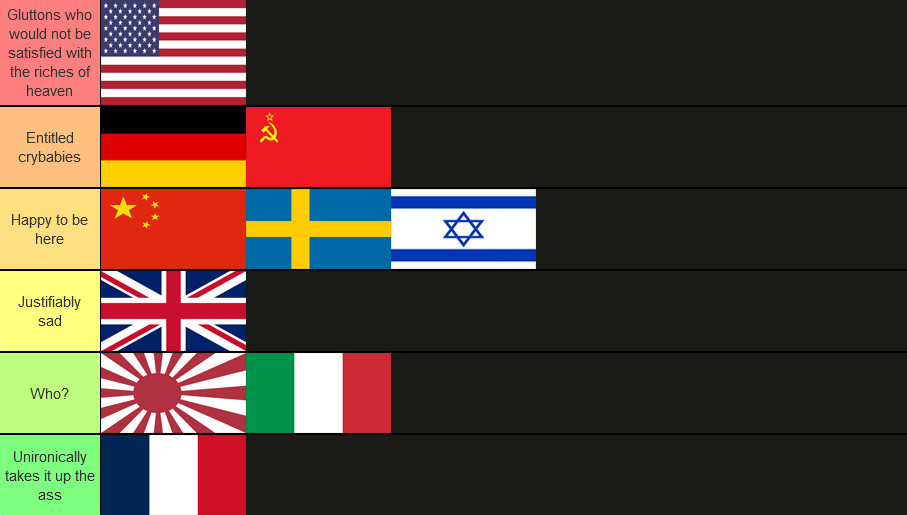 >>562672165>>562672406>>562672617i literally just wanted to see what nuclear bombs the US team gets and afterwards do some wikipedia reading