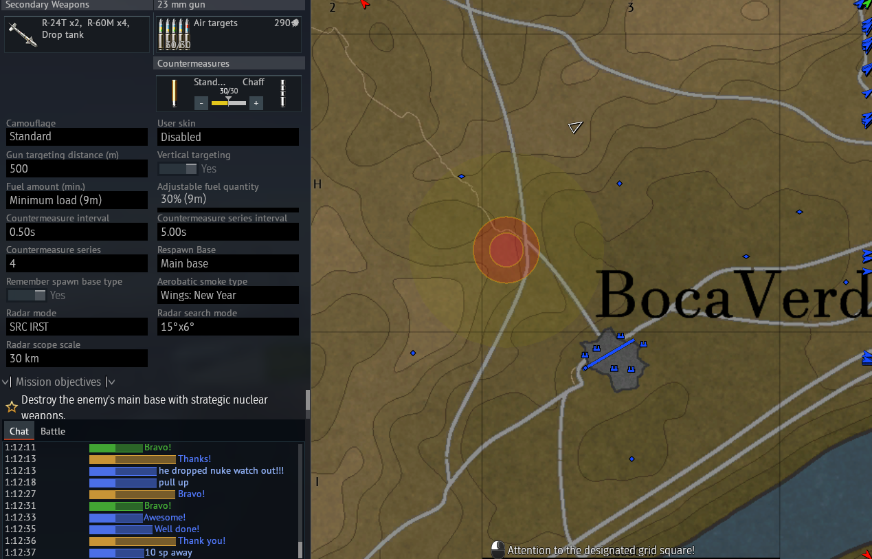 it would be fun to do a 4stack of mig-23s that just focus on destroying every single SPAA cluster on the mapi reckon it would take around 10 minutes if everyone is doing it efficiently (speedrun to 250sp, J out, spawn nuke, lob into the closest SPAA cluster, J out instantly, repeat)