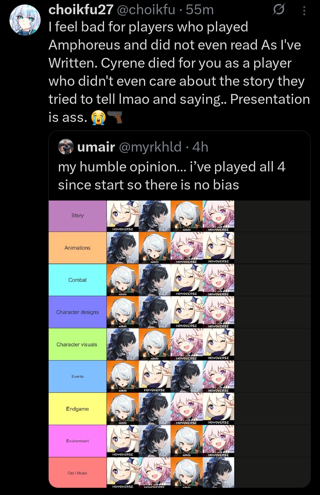 >>562593168Imagine putting Wuwa of all things that high on story