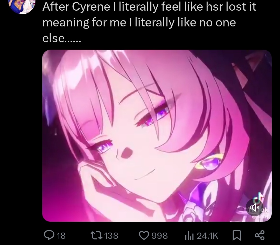 HSR might be dogshit right now but I want to remind you that no other gacha has ever topped Proi Proi, Irontomb theme, Lygus rave and the ABSOLVTE hype moments and AVRA that HSR had