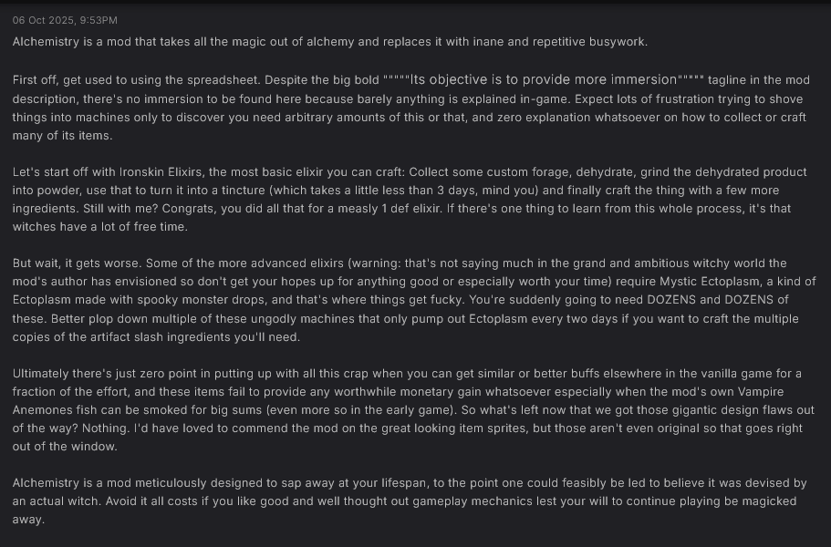 >>562751437is there any better alchemy mods out there? That or a way to edit the production speeds/sell prices?