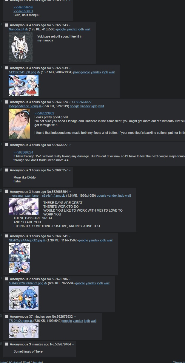 >OngoingKöln META(Cruise Mission) & Avrora skin(Cruise Pass)Regensburg METAProject Identity: ExplorerSkins for Explorer and TBSSR Unryuu(Aircraft Carrier), SR Kizu (Light Cruiser), SR Nayoro (Light Cruiser)Skins for new girls + Maya, Choukai, Gorizia, Seydlitz, L'Indomptable>UpcomingDEAD OR ALIVE Xtreme Venus Vacation CollabBisoku S2 (July)>ReminderBind your account, or you might lose your account when the game updates./alg/ doesn't have its own discord.>FAQ, READ THIS FIRST BEFORE ASKING QUESTIONShttps://files.catbox.moe/audy0d.txt>ResourcesShip Tier List: https://files.catbox.moe/ah02o7.png Equipment Guide: https://docs.google.com/spreadsheets/d/1wWMIzaUKISAXMbOEnmsuuLkO9PesabpdTUWdosvHygMFleet Builder: https://renhex.github.ioAzurLaneFleet/PvP Guide: https://docs.google.com/spreadsheets/u/0/d/1BewmBsf4EWKAf_UwYax05c7ksL51y6sjs96pIwD73JcFleet Tech Tracker: https://retropaint.github.io/azur-lane-fleet-tech-tracker/Augment Guide: https://pastebin.com/UBpjkhFg EN Tierlist: https://slaimuda.github.io/ectlCN Tierlist: https://wiki.biligame.com/blhx/井号碧蓝榜合集>Wikihttps://algwiki.moe/https://azurlane.koumakan.jp/>Story summary and Lorehttps://pastebin.com/6b35wsYn >Guild Spreadsheet:https://docs.google.com/spreadsheets/d/1Qq18CaXX9fWaTva_OuGTEfqGAJ6fM69KbfmQhHp0yaYPrevious: >>562410504
