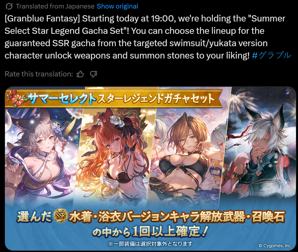 >Steam Client Releasedsteam.granbluefantasy.com>Roadmap- https://gbf.wiki/User:Umikin/Timeline>April Koregra- https://granbluefantasy.com/ja/news/9674/>April Schedule4/1 April Fool's4/6 Water Advantage GW4/14 ROTB Update4/17 ...and you. added to Side Stories4/23 New MSQ Chapters & Fylkis4/23 Light/Dark Taboo raids>Future Schedule5/15 - FMA Collab6/? - Illustrious FLB & Transcendence7/? - Wizard Origin>Granblue Relink: Endless Ragnarok - 7/9Latest Info>https://www.youtube.com/watch?v=NaKBXO0HHa4Maggie/Bea/Eustace/Gallanza playable>How to StartGo to https://game.granbluefantasy.jp in any Chromium-based browser>READ THE FAQ before posting - It will answer most of your questions if you're new or learninghttps://gbf.wiki/FAQ>Helpful links - These links contain useful information like important guides and other stuffGranblue Fantasy Toolbox - https://mizagbf.github.io/GBF Advanced Search - https://gbfas.ioGBF Grid and Teambuilding - https://gbfguide.comMain Story Transcript - https://calico.nekoweb.org/gbf/story/Wiki Advanced Grids - https://gbf.wiki/Advanced_Grids/gbfg/ Mega Pastebin - https://pastebin.com/xHkyQTy8/gbfg/ Crew Directory - https://rentry.org/gbfgcrewsPrevious >>562467997