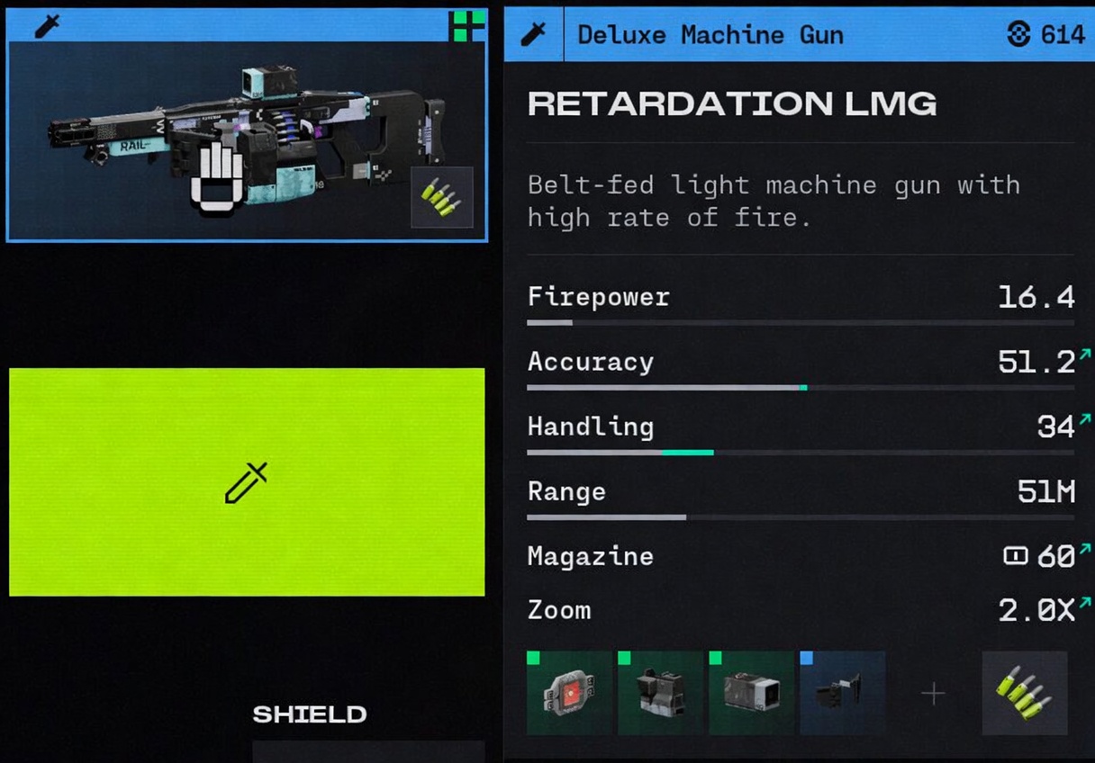 >>562617775LMGs actually suck ass in this game. Their damage is so low per bullet that even a Bully out of range is going to down you before this thing even strips shields.