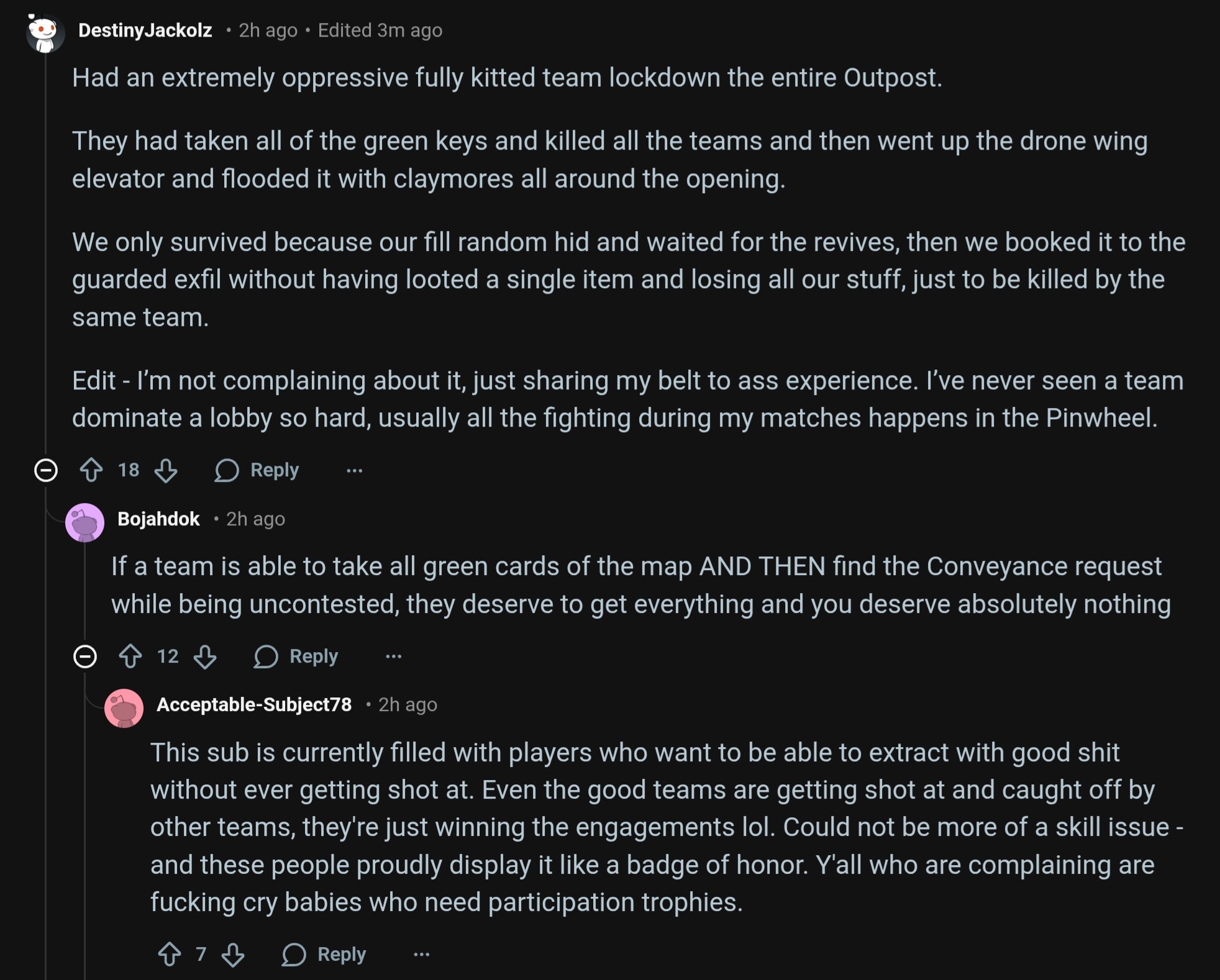 >Muh gear and failed exfils!This thread might as well be filled with children