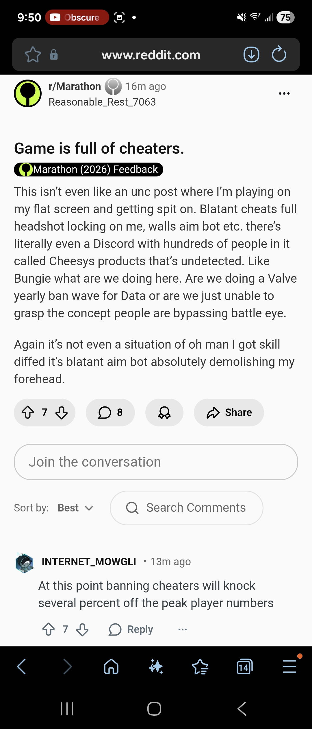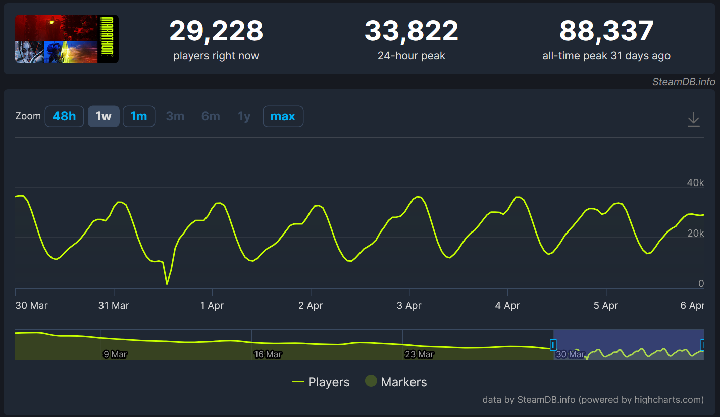 I’m sorry fellow Marathon Sisters….starting to feel like they might never turn things around…I hoped the player count would have risen sharper following the delayed glowing reviews, Arc Raiders falling out of favor, and people just looking for a reprieve before Power Plant Day…alas, I fear my hope for Marathon was severely and gravely misplaced…I…have been Raped…