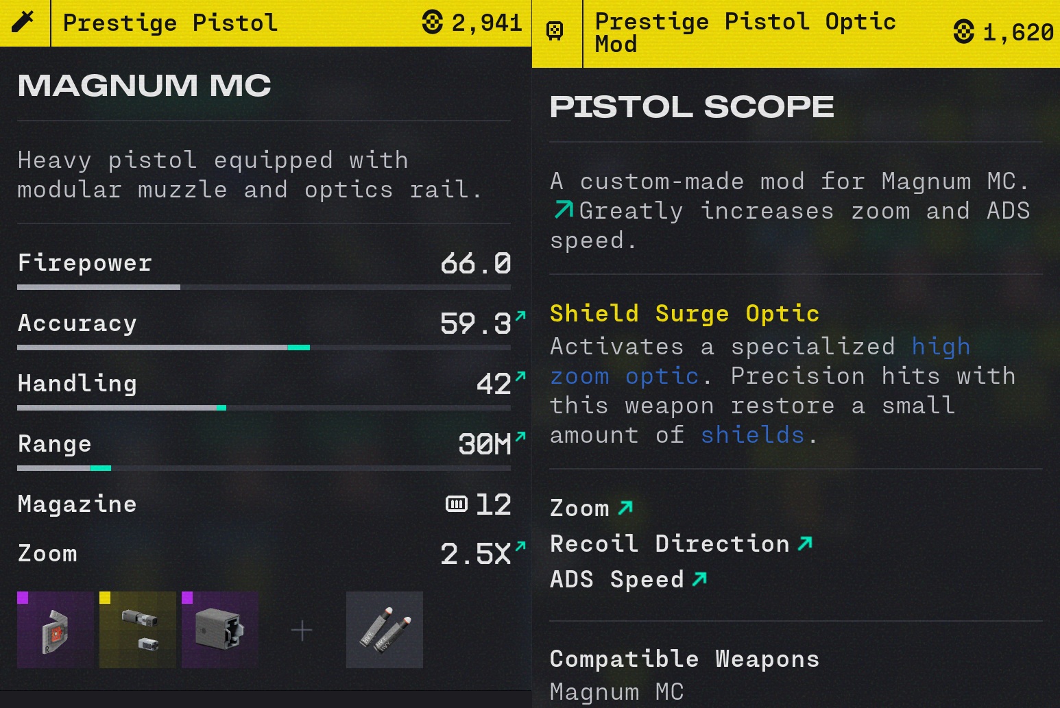 I was kind of excited to grab a prestige mod out of the Pinwheel vault without enough time to spare to look at it since I had to run to reach exfil - what the fuck is the point of this? The ADS speed wasn't long before, and increasing zoom to 2.5 is fucking pointless when the most range you can get this thing to have is 30m, the fuckin gold mod doesn't even give it more range like other scopes. And of course 'a small amount of shields' could mean 5 or it could mean 20, but most likely means 2.