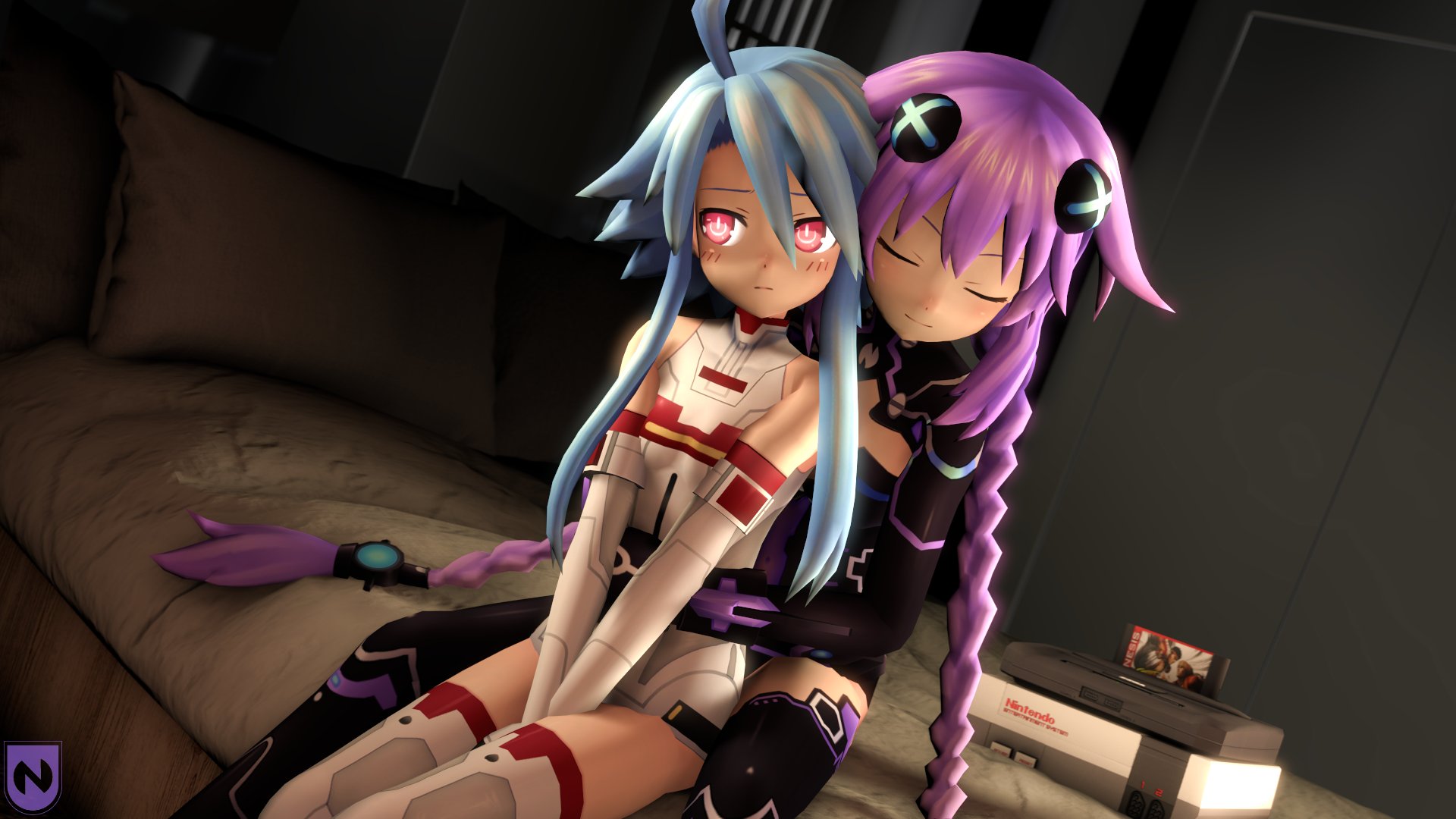 I LOVE BLACK HEART. I LOVE THE WAY SHE TALKS. I LOVE HER JAPANESE VOICE AND HER ENGLISH VOICE. I LOVE THE WAY SHE SAYS SHE HAS TO BE THE ONE DOING EVERYTHING. I LOVE HER REAL NAME WHICH IS NOIRE WHICH IS APPROPRIATE BECAUSE I ALWAYS FEEL NO IRE WHEN I HEAR HER. I LOVE THE WAY HER CLEARLY SOFT AND SILKY WHITE HAIR FLOWS. I LOVE THAT SHE'S 160 CM WHICH IS IMAGINE TIER BECAUSE I AM WAY TALLER THAN HER. I LOVE THAT SHE USES SWORDS BECAUSE IT IS MY FAVORITE WEAPON TO USE IN ROLE PLAYING GAMES. I LOVE THAT SHE CARRIES THE TEAM WITH GOOD ALL ROUND STATS. I LOVE THAT SHE TRUSTS ME ENOUGH TO HELP HER IN HER GAME WHEN SHE LOST ALL HER FRIENDS. HER SWORD IS REALLY NICELY DESIGNED IN HOW SIMPLE IT IS AND IT COMPLIMENTS HER NICE ELEGANT FIGURE. SHE HAS PERFECTLY SIZED HIPS AND BREASTS FOR HER FRAME. AS SHE WEIGHS 45KG SHE IS PRETTY LIGHT WHICH WOULD MAKE CARRYING HER TO A COMFORTABLE PLACE EASY WHEN SHE GETS TIRED FROM WORK. NOIRE GETS ALONG WELL WITH NEPTUNE WHICH IS NICE. I LOVE THAT SHE IS FRIENDS WITH BLANC AND VERT. I LOVE THAT SHE LIES ABOUT BEING OVERWORKED BECAUSE SHE DOESN'T WANT THE OTHERS TO WORRY ABOUT HER BUT WE ALL KNOW WE HAVE TO DO IT ANYWAY. I LOVE THE EAGERNESS SHE HAS WHEN DRAGGING ME AROUND TO SPEND THE DAY WITH HER. I LOVE THAT EVEN THOUGH SHE SAYS MEAN THINGS SHE CARES ABOUT HER FRIENDS.