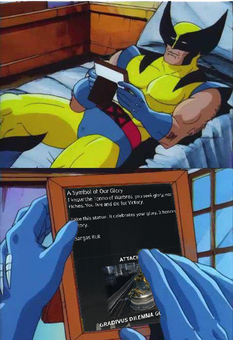 >experimented on>has claws>"too angry to die"I've been playing Warframe for some 10 years and only now it occurred to me that Valkyr is a blatant Wolverine ripoff.