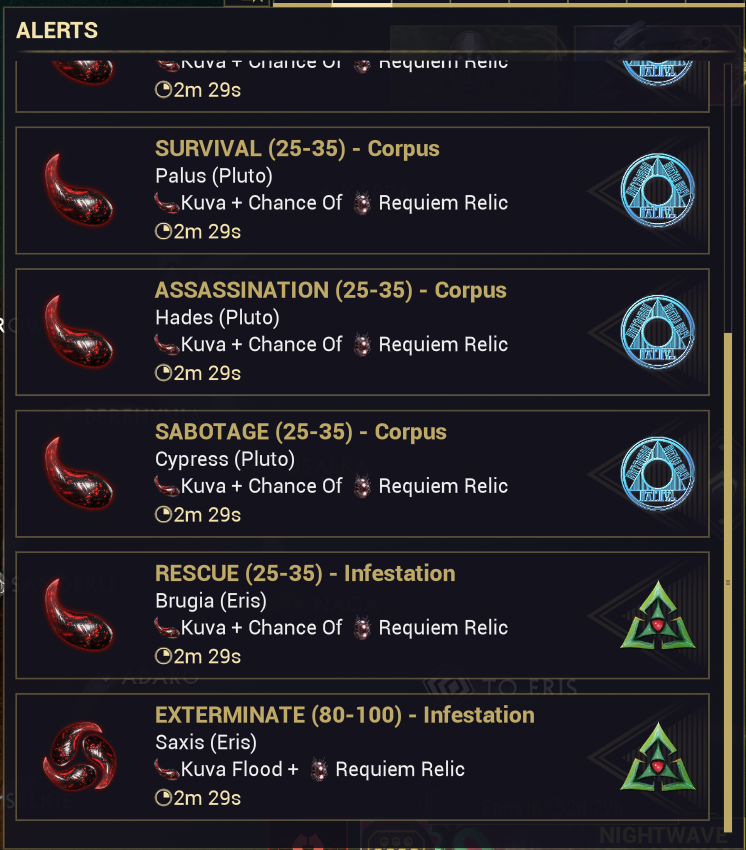 Protip: If there are shitty mission types in your nightmare alerts, wait a bitThe type changes after a while, but not the planetNo this is not related to the 8h cooldown, however don't wait too long as it WILL do a hard reset eventually when the cooldown ends.For example, the current Earth Capture on Mantle was an Interception a while ago.
