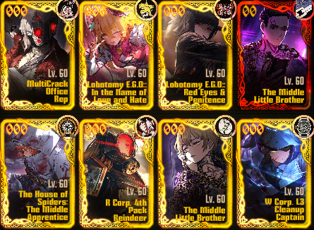 Previous thread: >>562590372Season 7 - Kumo no Ito2025.12.31 —Mirror Dungeon #7 - Mirror of Names and Spiders2026.02.19 —Refraction Railway Line 5 - Merry Go Round2025.02.20 —>Upcoming Events2026.04.16 — 2026.05.14Chapter 9.5 - Twining Threads>Current Events2026.03.19 — 2026.04.16Chapter 7.5 - LCB Regular Check-up BokGak>Current Extractions2026.04.02 — 2026.04.16[000] The House of Spiders: The Ring Nursefather Hong Lu[000] The House of Spiders: The Ring Apprentice Faust2026.03.19 — 2026.04.16[000] LCE E.G.O:: AEED Gregor[HE] Ardor Blossom Star Faust2026.04.02 — 2026.04.16Target Extraction: [ Yi Sang ]FAQs! This game is directly tied to the setting of Project Moon's previous games, Lobotomy Corporation and Library of Ruina, and is set after both. Expect spoilers for those games in this thread.! The tutorial is important.>Download linksAppStore: https://apps.apple.com/app/limbus-company/id6444112366Google Play: https://play.google.com/store/apps/details?id=com.ProjectMoon.LimbusCompanySteam: https://store.steampowered.com/app/1973530/Limbus_Company/>Other linksOfficial twitter: https://twitter.com/limbuscompany_bOfficial youtube: https://www.youtube.com/@ProjectMoonOfficialOfficial site: https://limbuscompany.global>Required readinghttps://mega.nz/folder/xosDkZ5Z#Wt4JpUt5Bb2XG77pxuuXpw>For all your EGO and Sinner info needshttps://limbus.kusoge.xyz/https://gll-fun.com/en/>Useful resources and a general guidehttps://rentry.org/lcg_resourceshttps://rentry.org/lcbguidehttps://rentry.org/LCB_optimal_grind_guidehttps://lcb-days-since-last-id.carrd.co/https://lcb-days-since-last-ego.carrd.co/>Countdownhttps://lcbcountdown.carrd.co/