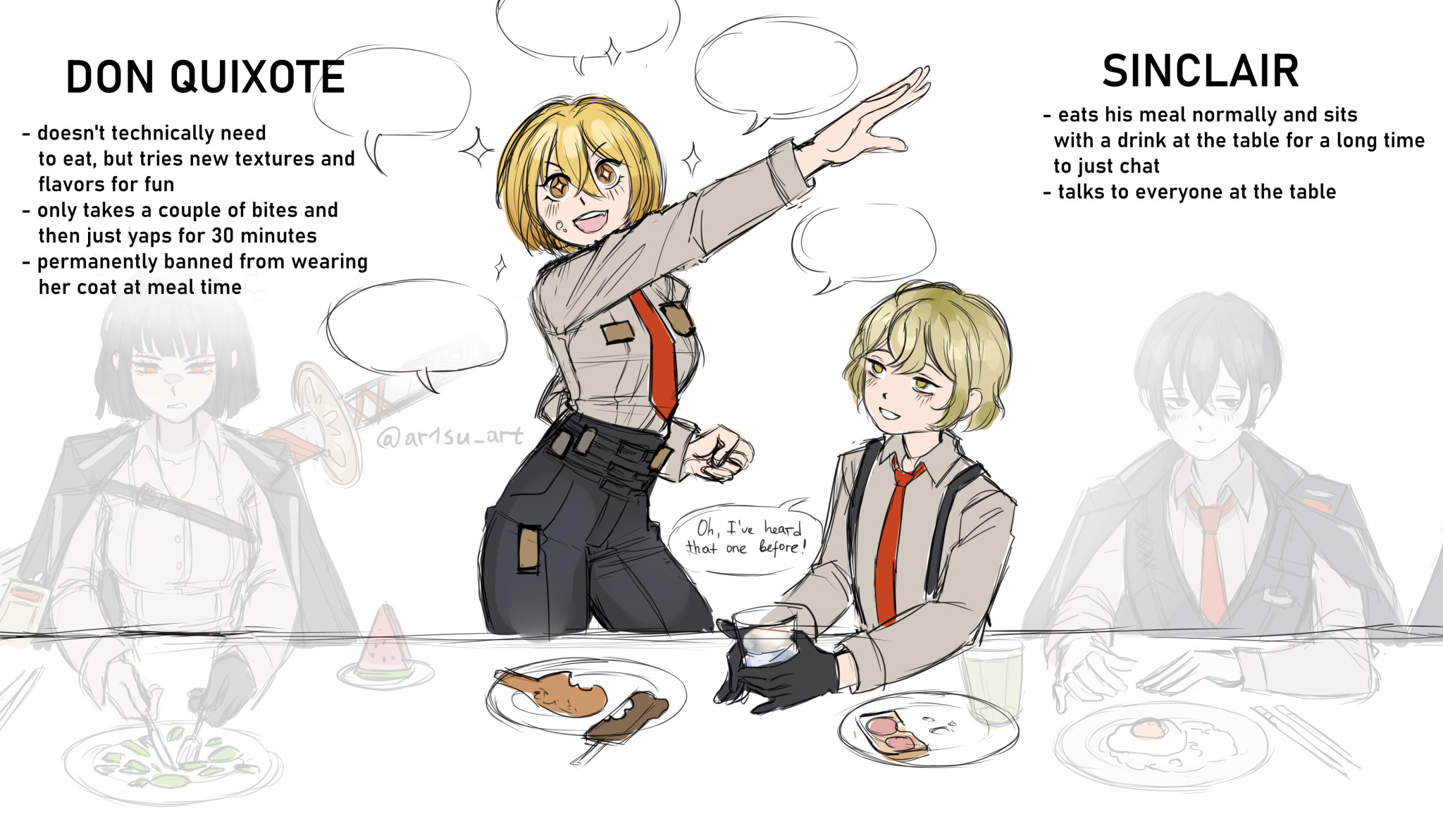 >>562636272>Talks to everyone at the tableDoes it still count as talking to everyone when he's sitting there and occasionally goes "haha yeah" to someone else's conversation like he always does.