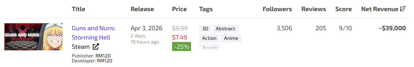can you imagine without proper data (steam charts) niggas would be saying that 200 reviews games made millions