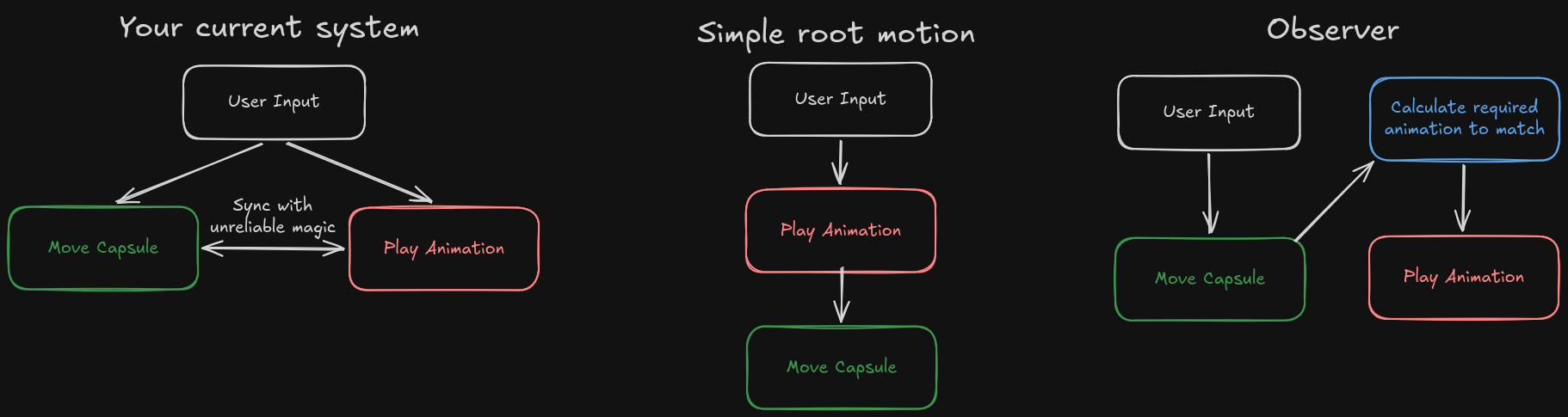 I have a better idea. Instead of using root motion and thus fucking up the math, I'm going to simulate root motion by having you accelerate and decelerate mid-movement.