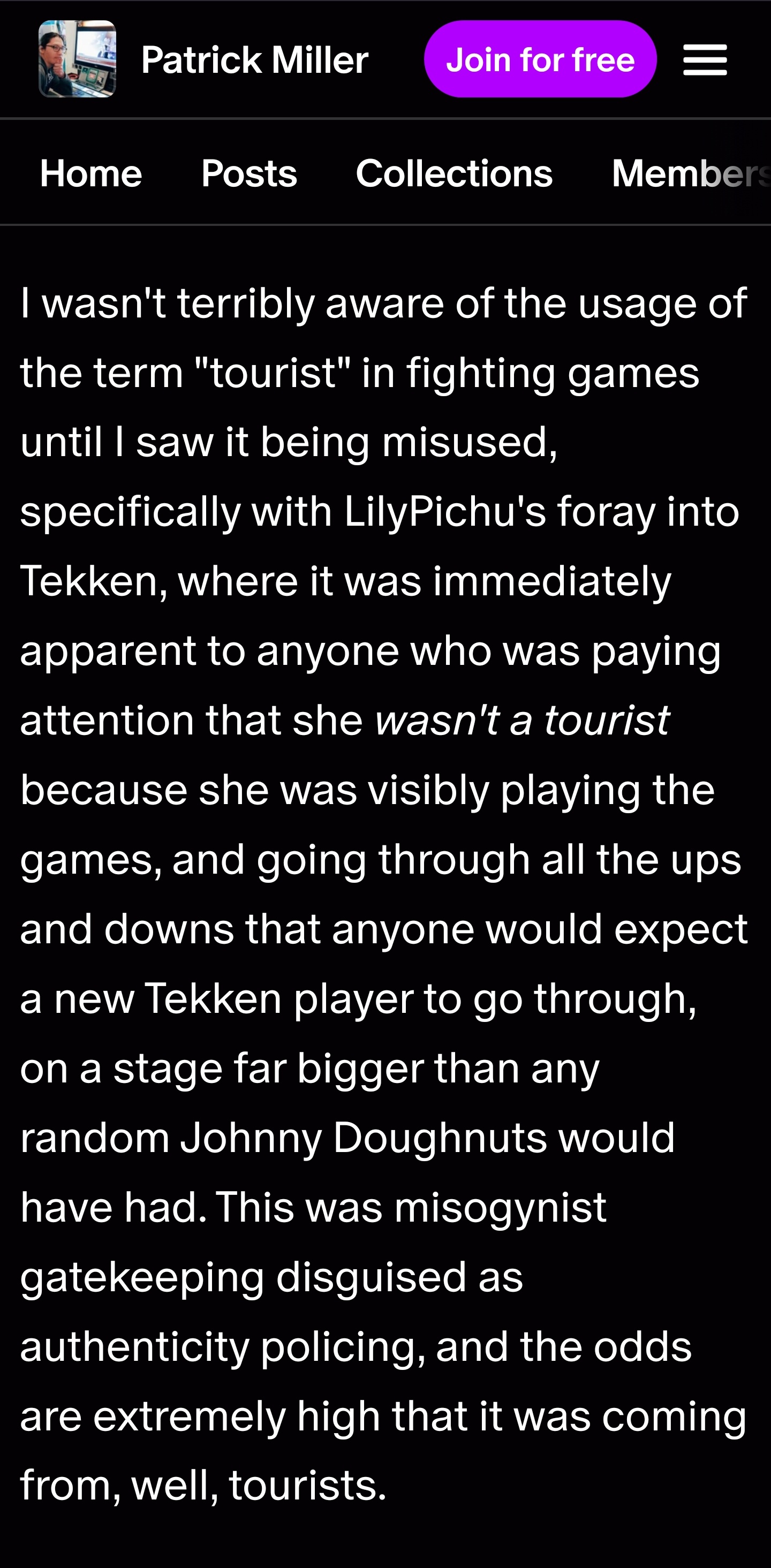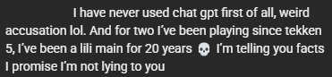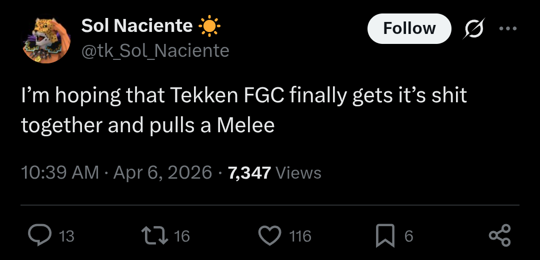 I started with 5 (or maybe 4 at a friend's house), but if I could only play one Tekken game again it would be T7. I like that it's almost turn-based in its back and forth interactions, I like how moves carry the risk they are supposed to instead of everything being pseudosafe with pushback. I like how slow and attritional it is compared to the rest. I've been through the whole journey of pretending 5DR was the peak of everything, the Tag 2 phase, the works. This is simply my truth. Now cue some tranny seething at a "17er" having a preference.