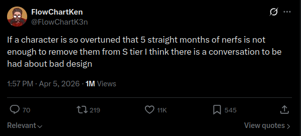 T6 was the peak of everything. Fuck off zoomzooom. T7 started alright but went aids by the time season 3 released as the difference between a Season 1-esque character and fucking Kuni was just absurd.