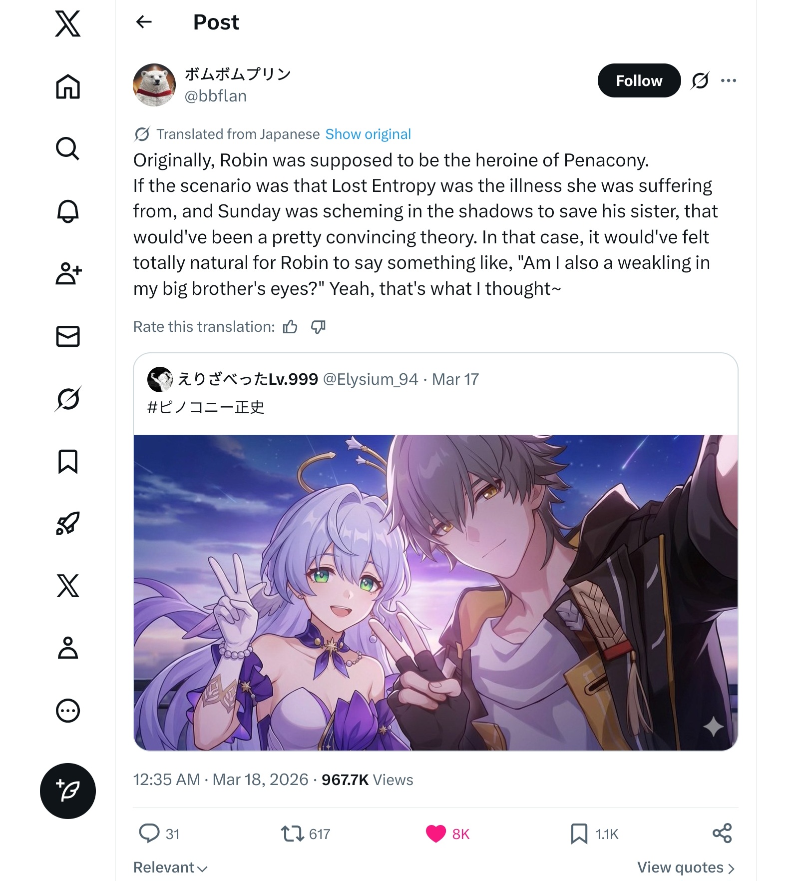 >>562655269Fans of [character X] will never understand how much [character Y] enjoyers love their favorite, that narrative resonance is quite hard to come by.