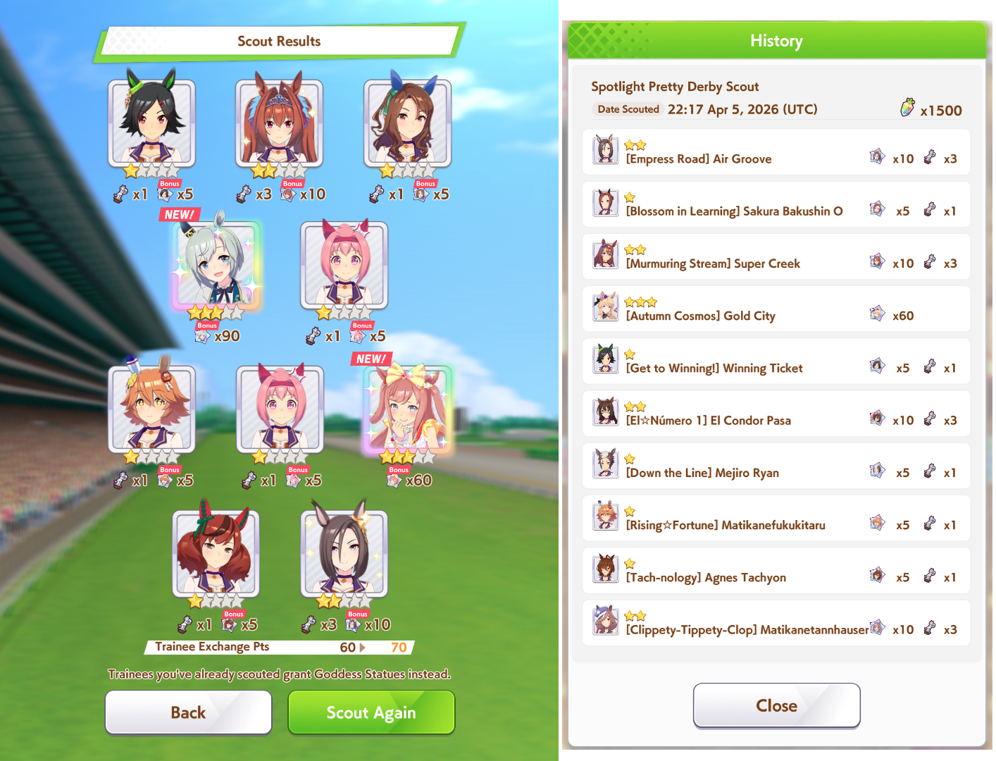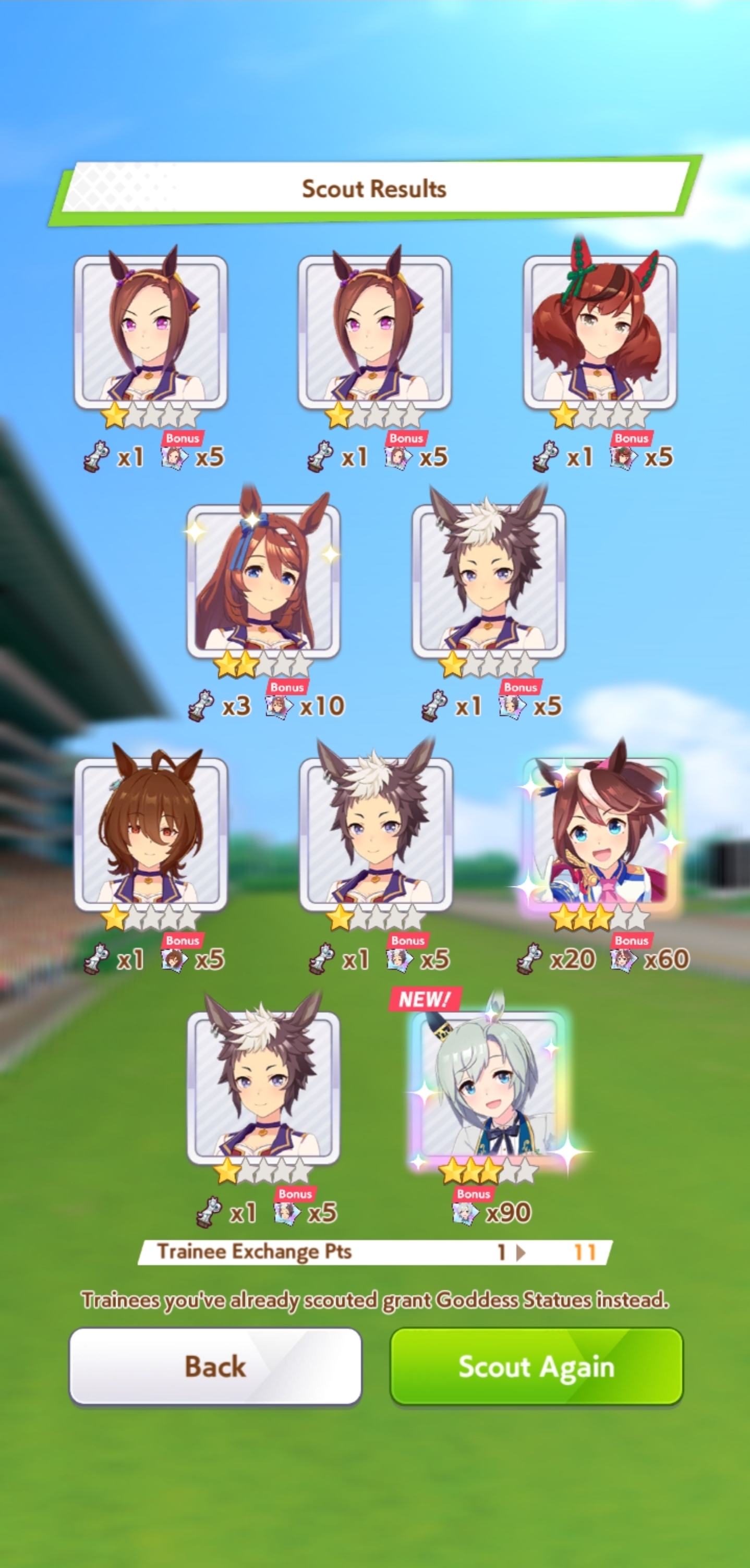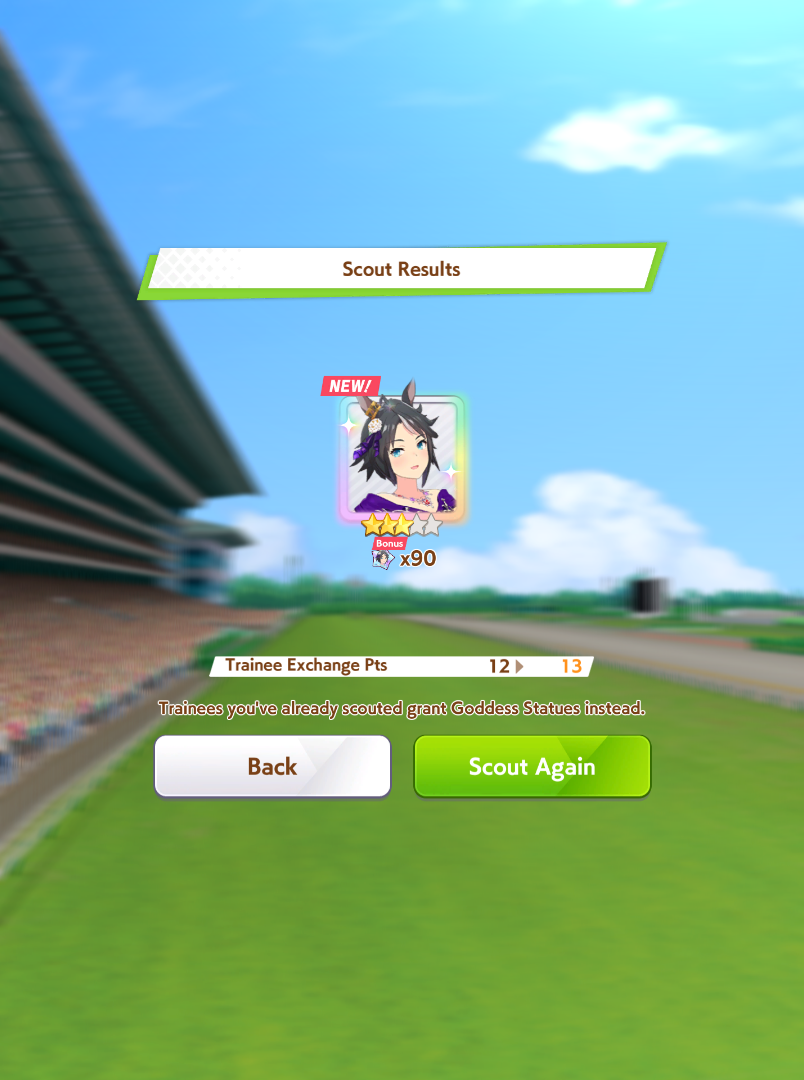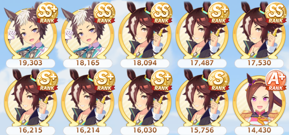 >80 tickets & 18,000 carats>Valentine's Bourbon (new)>Seiun Sky (original, dupe)>Seiun Sky (ballroom)>Symboli Rudolf (dupe)Then I had to pity spark my wife Fuji. She's so demanding...