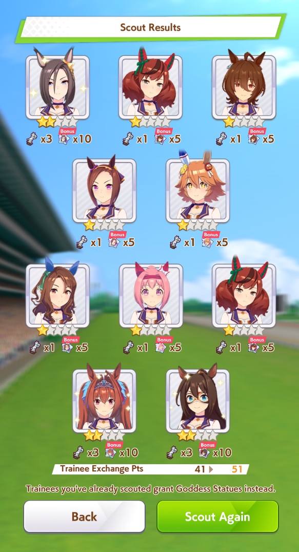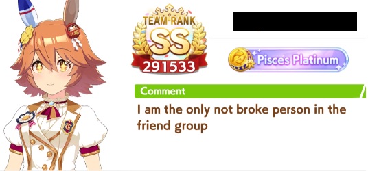 3 weeks now I've had every single uma in the game. Every uma banner I get them in around ~10-50 pulls, i.e. I got fuji in 3 pulls and sei in 50. Bright I got on my first 10 pull. How many other people have every uma? It's hard to estimate
