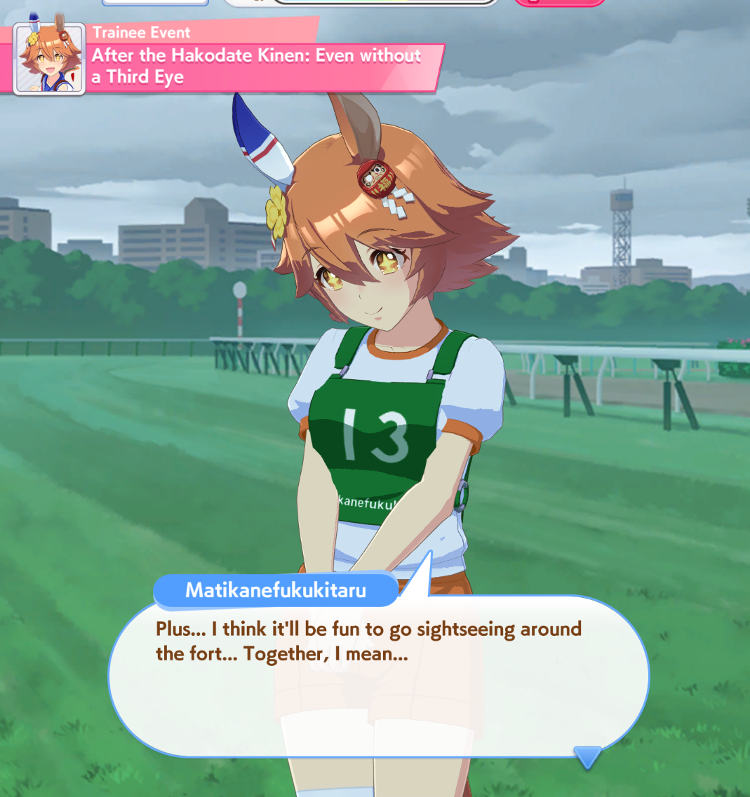 >>562670581Depends on which Uma you're training. For a pacer I'd borrow FM. For anyone else I'd take NTR's juicy skill.
