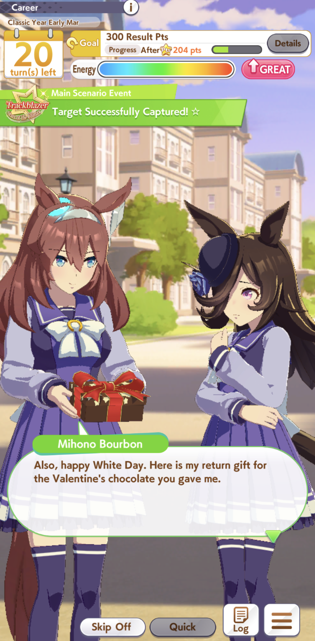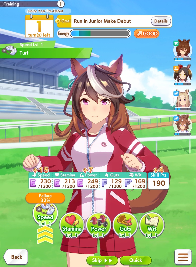 >>562671123If your summers are bad, you'll have to spend your final 15 turns only clicking on speed regardless of if they're rainbows or not.