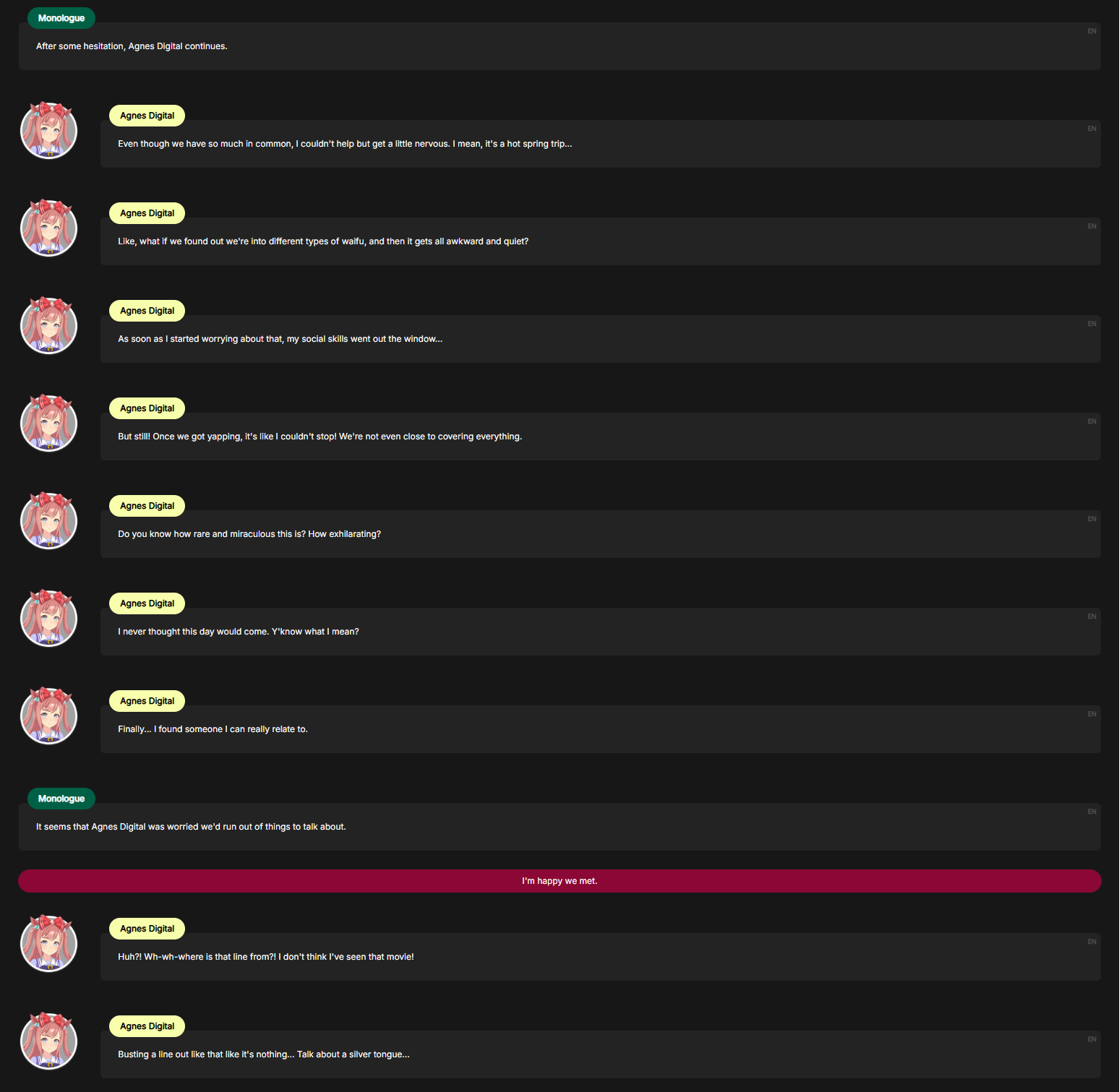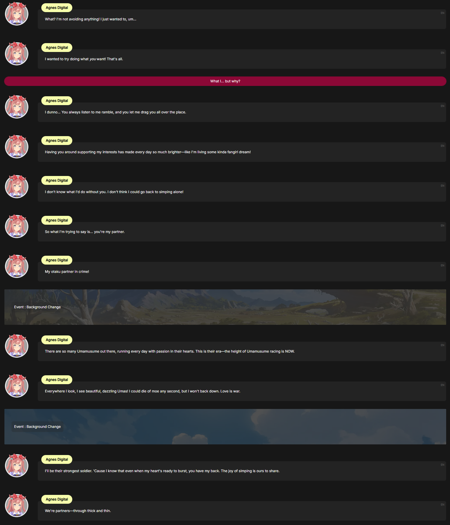 >>562670372nta but trainer absolutely ruined digitanshe can no longer simp about umas without her trainerits just no longer the same to her anymore(her interactions with her trainer are actually quite cute at times)