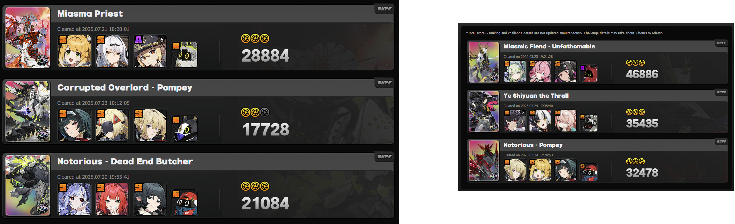 >>562681348Fiend has to be the one boss that has the most aggressive HP increase to push scores down. I also imagine it's still going to go up because of the full idol team