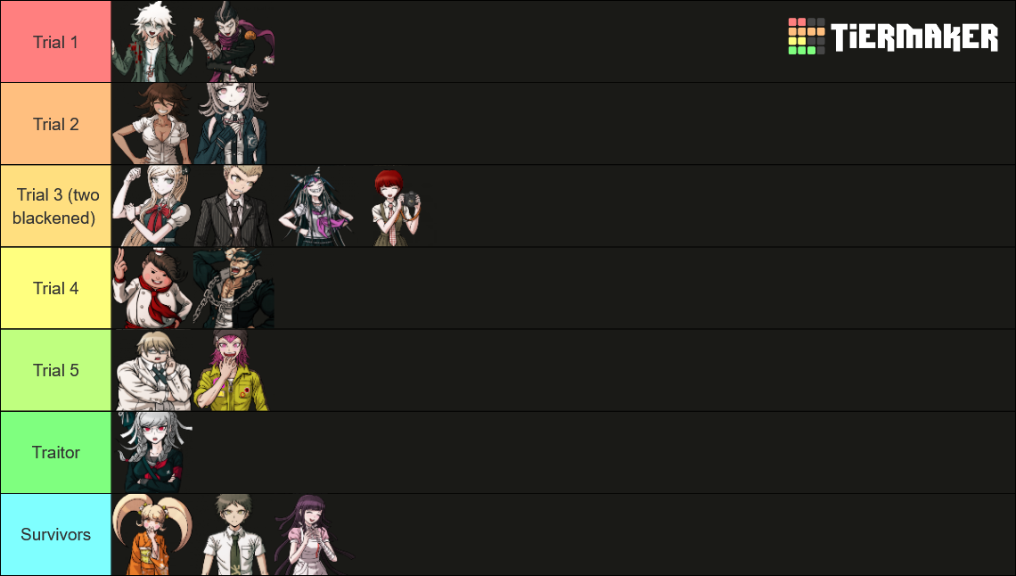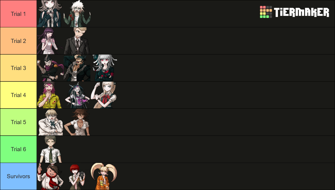 Post 2x2 predictionshttps://tiermaker.com/create/danganronpa-2-goodbye-despair-tier-list-85774