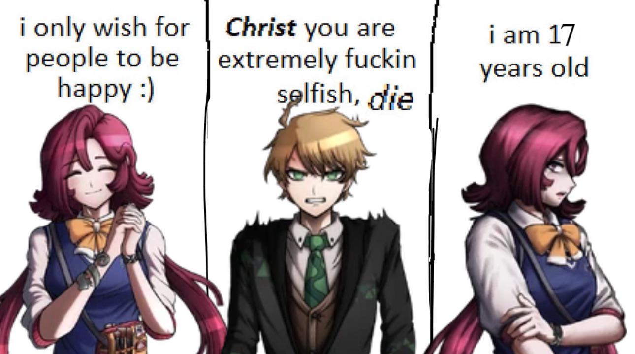 >>562795462I will say that Danganronpa does the "How Will We Succeed?" writing trope amazingly well. At least for the protagonist.>>562795491/drg/ can be very Reddit.