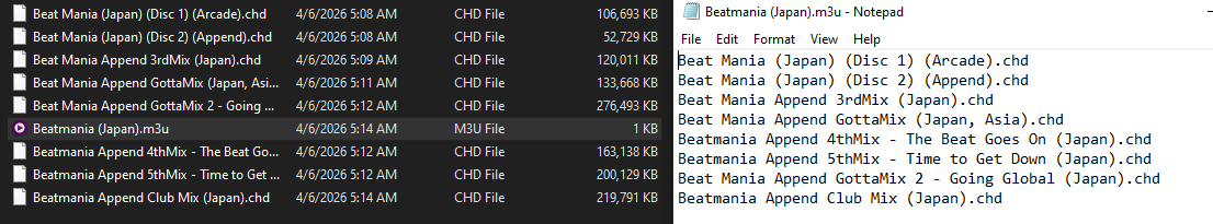 I can't seem to get disc swapping to work in beatmania. No matter which disc I choose, it just stays on Arcade 2ndMix (which is disc 1). Am I doing something wrong? I'm using retroarch and using the eject disc, select disc from disc index, then insert disc options.