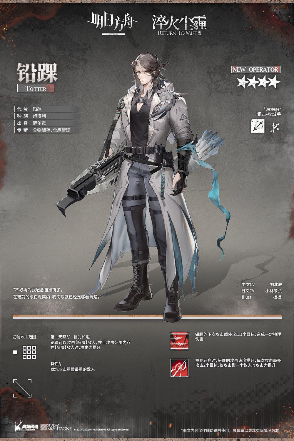 Previous thread: >>562645653Happy birthday to Earthspirit!>CURRENT, FUTURE GLOBAL/JP/KR CONTENT:[3/27-4/10][Standard]6* Sniper Pozemka, 6* Defender Jessica the Liberated (Shop), 5* Sniper Melanite, 5* Medic Record Keeper, 5* Supporter Quercus (Shop)[4/1-4/22]Icebreaker Games #2 - Chiave skin[4/1-4/15][Joint Operation]6* Sniper Narantuya, 6* Guard Degenbrecher, 6* Sniper Lemuen, 6* Caster Ho'olheyak, 5* Vanguard Mitm, 5* Specialist Wulfenite, 5* Supporter Grain Buds, 5* Sniper Lunacub, 5* Caster Santalla, 5* Sniper Greyy the Lightningbearer>CURRENT, FUTURE CN CONTENT:[3/26-4/9][Standard]6* Supporter Stainless, 6* Sniper Ray (Shop), 5* Sniper Kichisei, 5* Defender Bassline, 5* Caster Santalla (Shop)[3/27-4/10]When Elegies Are Ashes - Brigid skin[3/27-4/10][Returned From A Pyre]6* Caster Necrass, 5* Specialist Wulfenite, 5* Defender Firewhistle[4/7-4/21]People, A People - 5* Supporter Botanik[4/7-4/21][Rage of the Many]6* Zima the Raging Tide, 5* Medic Ukusik, 5* Vanguard Mitm[4/7-4/21][Ambiance Synesthesia]Nymph, Surtr[TBA][Ambiance Synesthesia]Lemuen, Necrass, Saria>/akg/ website:akgcc.github.io>AK EN Database:puppiizsunniiz.github.io/AN-EN-Tags/akhrchars.html>More valuable resources:rentry.org/akg_resources>/akg/ merch guiderentry.co/akg_merch
