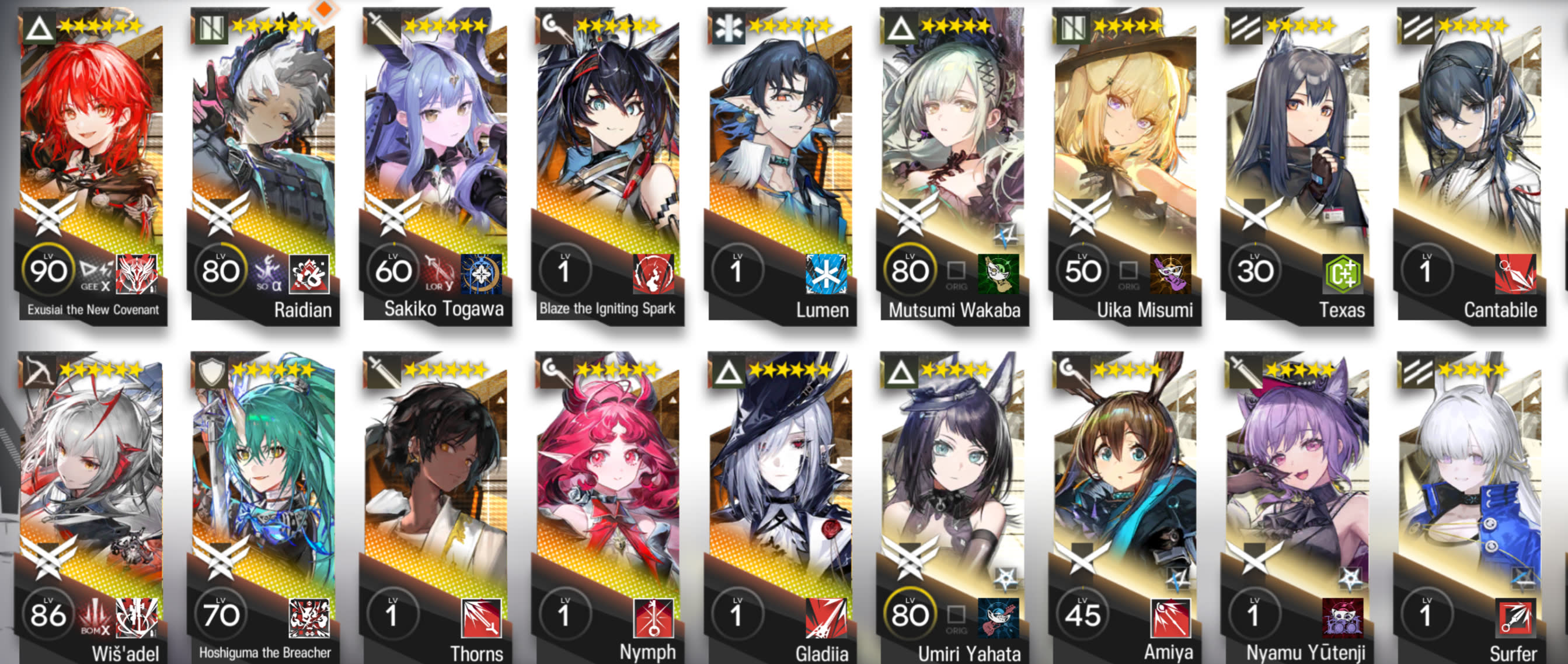 My favorite operators are Ho'olheyak, Carnelian, Lappland, Virtuosa, Utage, Degen and Nian. What does that say about me?