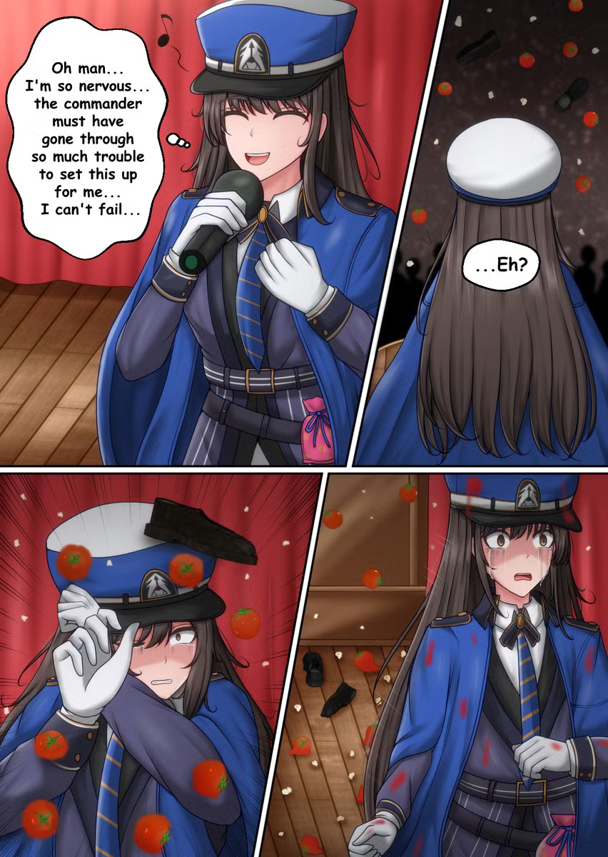 >Update day arrives>Boot up the game, instantly click the Event tab>Event title: "GODDESS OF THE STAGE">Wait, what?>Story I>Commander and Anis are in the Outpost. Anis sighs, holding an old 'Pretty' CD.>"Commander...you know the idol group Pretty, right? I was in the 42nd generation. But did you know the group has been around for over a century? Back when they first debuted...">Screen fades to white.>Bold text appears on screen: [100 YEARS AGO]>ohgodno.jpg>Voiceover: "Wowee Dorothy! These 'Pretty' girls sure know how to put on a show!">It’s Red Fucking Hood. Again.>The entire event is a flashback about the Goddess Squadron acting as bodyguards for the 1st Generation founders of the idol group Pretty.>Anis is not seen or heard from again for the next 20 days.>Part 1 is just Snow White eating all the VIP catering while Rapunzel tries to sexually harass the idols in their dressing room.>Part 2 drops. It's a melodrama about Dorothy having a schizophrenic meltdown because Pinne didn't live long enough to see Pretty's debut concert.>Red Hood interrupts the concert to play a sick guitar solo with the Pretty girls. They name her an honorary member.>The emotional climax of the 3.5 anniversary is Scarlet getting blackout drunk and slicing a Rapture in half with a glowstick.>Banner 1 drops>It’s SSR Idol Red Hood.>Burst III Pilgrim. Completely powercreeps her original version and Crown combined.>Hard Mode epilogue finally unlocks.>Fans are huffing weapons-grade copium. "They're gonna tie it back to Anis's time in the group at the end, just watch.">Fades back to present day.>Anis looking at the Commander.>"...Anyway, that's what Red Hood's diary said happened at their very first concert. The founders really were amazing.">Commander dialogue option: [What about your time in Pretty?]>Anis: "Huh? Oh, my time in the group was super boring and normal. I don't even remember it, honestly. Anyway, my tummy is rumbling, let's go get soda!">Event ends.