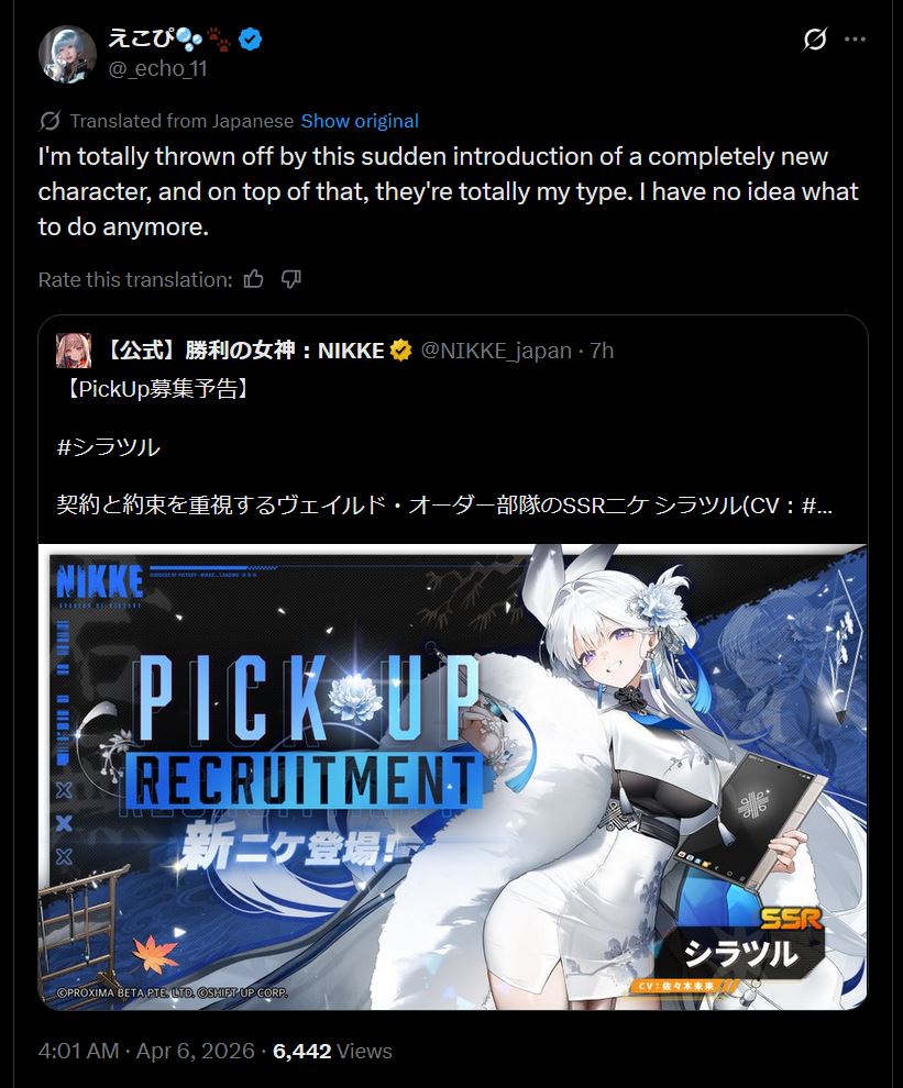 https://x.com/NIKKE_en/status/2041093567473729537The shitposting is soon upon us