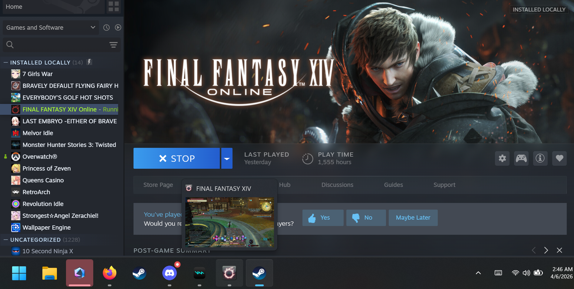 >>562699446>>562699885Another Mintbro...I build a linux box specifically for Dawntrail because the bench wouldn't run on Windows 7.Eventually got DT working on Win7 anyway but I was already several months into using Mint and it's been so much nicer than I expected.>>562699367>WINEDLLOVERRIDES="winhttp=n,b" %command%even a newfag to linux like me can google one line you put into steam>>562699934Steam is literally the reason Linux has gone from 0.1% marketshare to 5% in a couple years>>562700364XIVlauncher should be doing that for you, hated the steam launcher even on windows since heavensward and when they made that shit required to auth I was pissed.