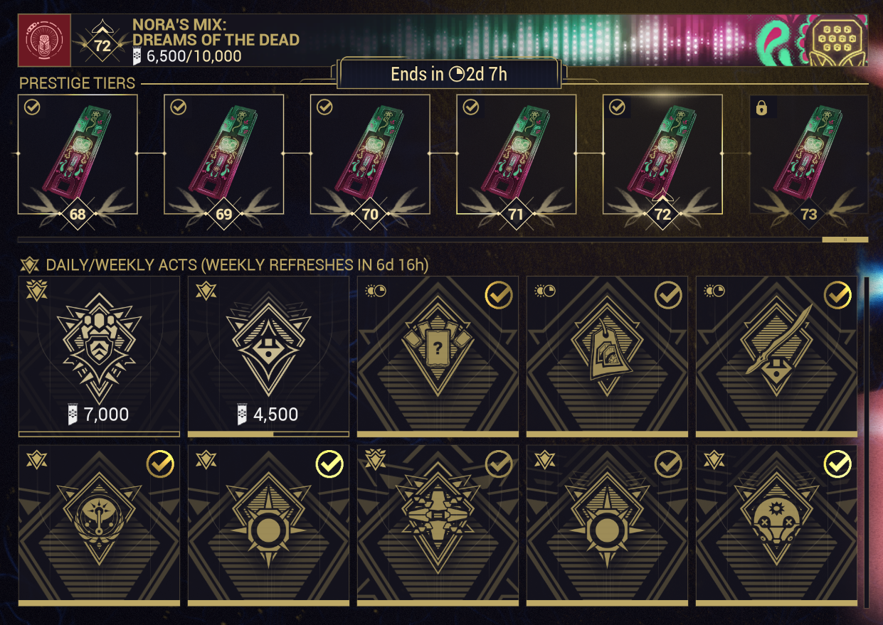 >>562700731with 2 more dailies I should end up at exactly 104 (30+74 prestige)