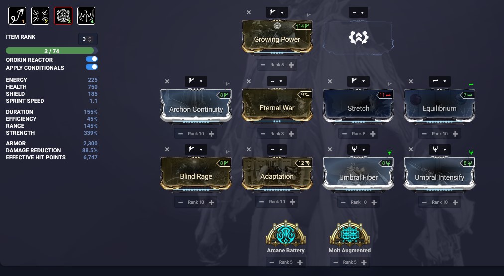 Thinking of slapping triple (or at the least, double) Umbrals on my Valkyr. I was curious about an Archon Intensify build with Persistence but thinking about it, it just doesn't work (you need to heal with claws, then turn off claws and turn them on again) and also Persistence on Valk feels unneeded