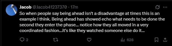 >>562711501>when liquid is ahead the head start doesn't matter>when echo is ahead it's because late start is now an advantageThe amount of mental gymnastics these "people" go through every race is unreal.