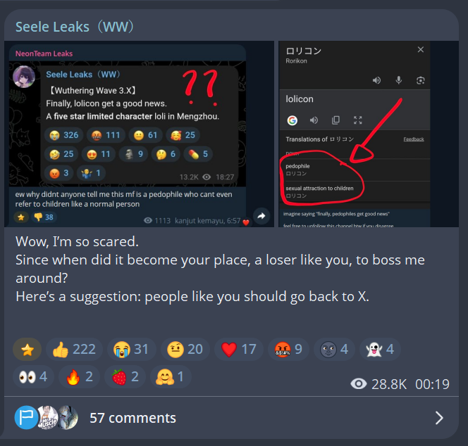 >>562748801>seele leaksI don't know why he bothers with wuwa leaks, he got roasted again yesterday by trannies and normalfags for showing Hiyuki panties, the fanbase of this game is literally getting worse than any mihomo game.
