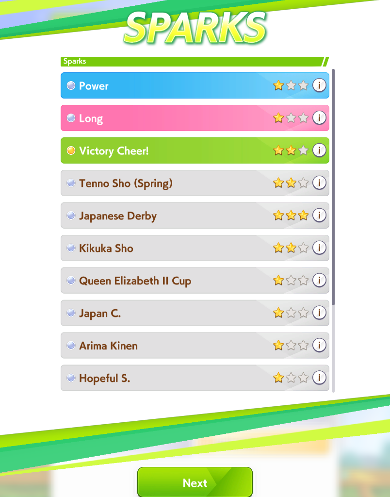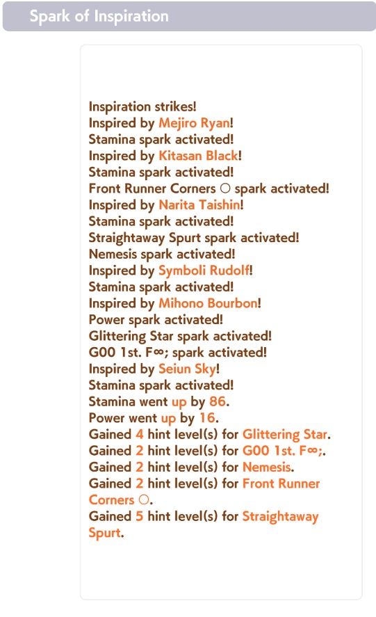 Fellow Torena-san. It has finally happened. My once vibrant and fertile Seiun Sky borrow has been abandoned on mass.Can anyone give me a rundown on what skill sparks are the new ones to aim for - specifically for a generic Front Runner Parent?