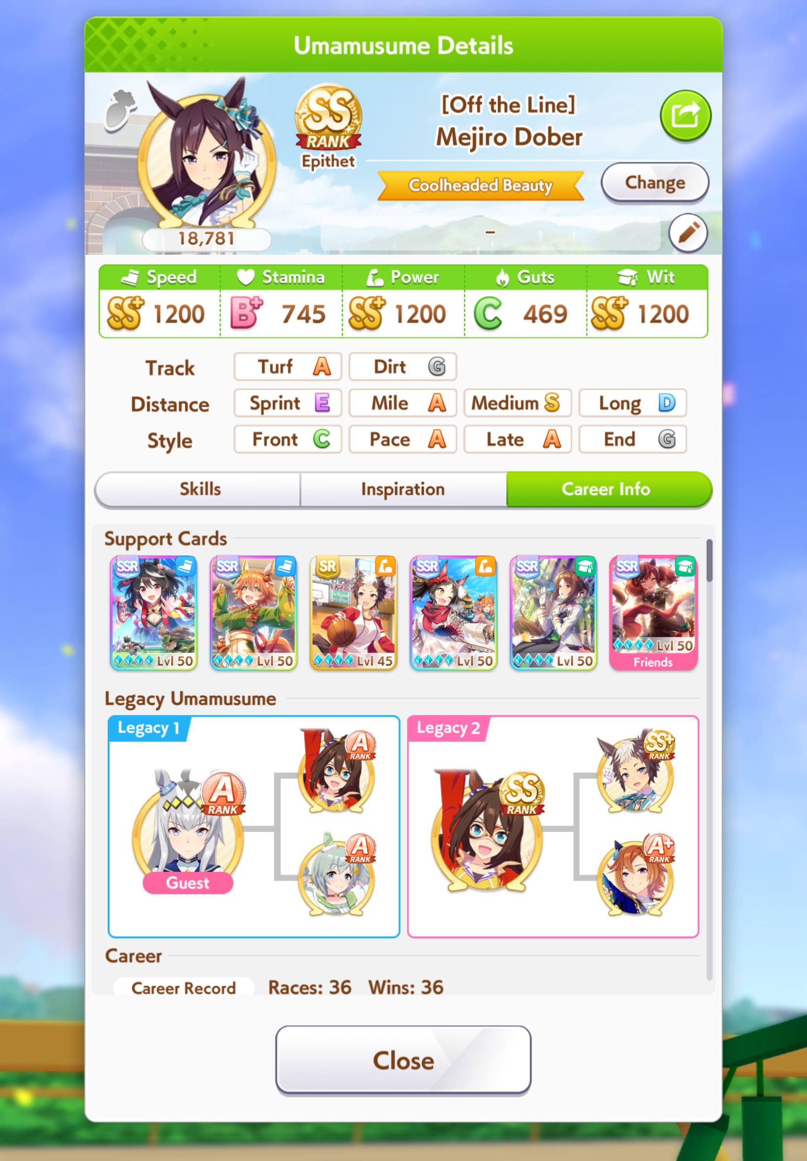 >>562732835Cool, thanks for gathering the courage to post it. You're not racing+winning enough, you want a balance. If you race too much you lose out on many potential trainings and your basic stats become lower. If you race too little you can't afford items to have *good* trainings and lots of other optimizations like forcing 3 races in a row with items. Fix that and you hit S all the time easy peasy. SS/SS+ is harder I believe its just luck + full sparks; Its much harder to do with bad luck and shit parents/sparks imo.