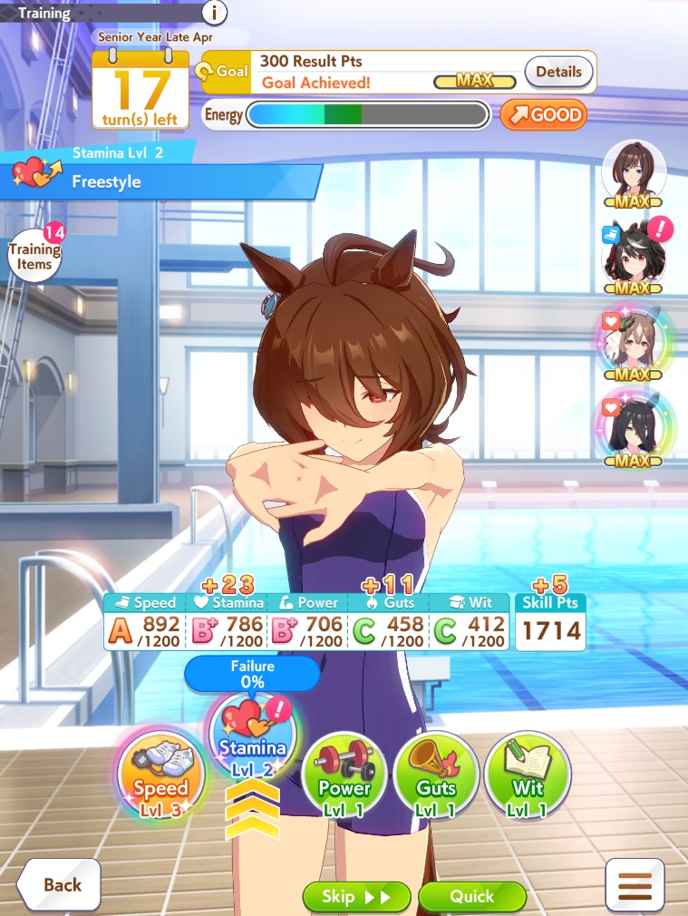 >>562732942>not planning the 2 60% megaphones for each summer and ankles for training.I already do that in summer, but should I only train in summer then? It was already a bit difficult balancing races during junior year and reaching max friendship with the cards before the first summer.
