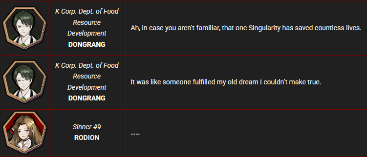 Rodya willingly abandoned her syndicate to become "not special". Valencina desperately wants to get accepted back into her syndicate to be special again. I think it fits great, every NF ID is essentialyl a bad end for each character's core personality>Yisang choosing to submit his own will instead of finally becoming active>Lu becoming a depraved gorefag like the Xianren