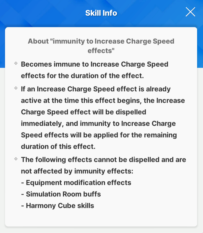 >>562779859Charge speed from OLs and cubes still apply to her because the immunity is applied once you enter the stage so then any charge speed changes are ignored. You can click the orange text to get explanation for skills if they have them.