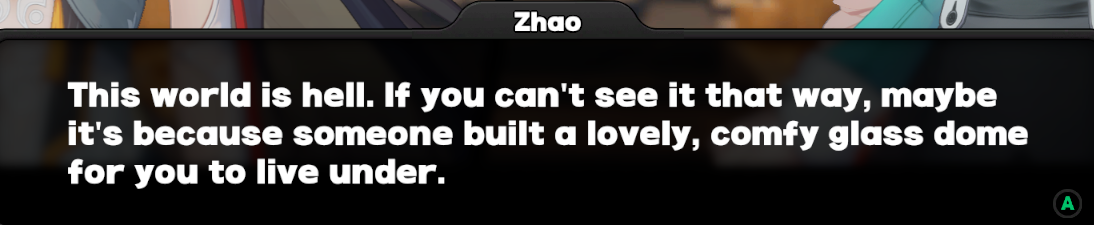 >>562764287>Banyue shifu should we help this intelligent construct girl that appears to be in an emotional crisis? >"Nah. Learn to sit back and observe, not everything needs a reaction, disciple.">Girl tries to kill herself and gets manipulated into committing a mass shooting shortly after