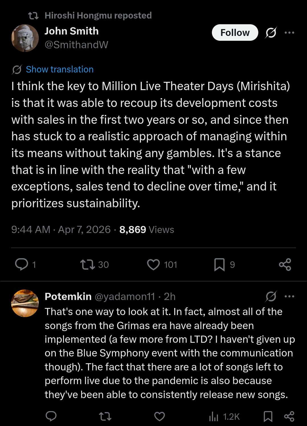 iDOLM@STER ThreadPrevious iM@S Thread: >>562728782Official website: idolmaster-official.jpJapanese news: imasnews765.comEnglish wiki: project-imas.wikiAPKs: apk.ksmz.moeOld archive of materials: sites.google.com/view/yukipobackupOld FAQ + Resource Links: pastebin.com/icRtaLvvMaterial translations + Music downloads: pastebin.com/DebHdukECharacter birthdays: pastebin.com/cLdezeDuNext thread OP: pastebin.com/A5UGxTuBHelpful Links: pastebin.com/Z70CGAsN>Event/Gacha Dates (Apr 5th): >>562602308 >>562602351- Previous News: >>562728795TUESDAY:Apr 7th, 9PM JST: VL Cosmo plays R.E.P.O. with Hinata Nao, Else, Tsukushi Aria and LuicA: youtu.be/EDD_99RZhLI