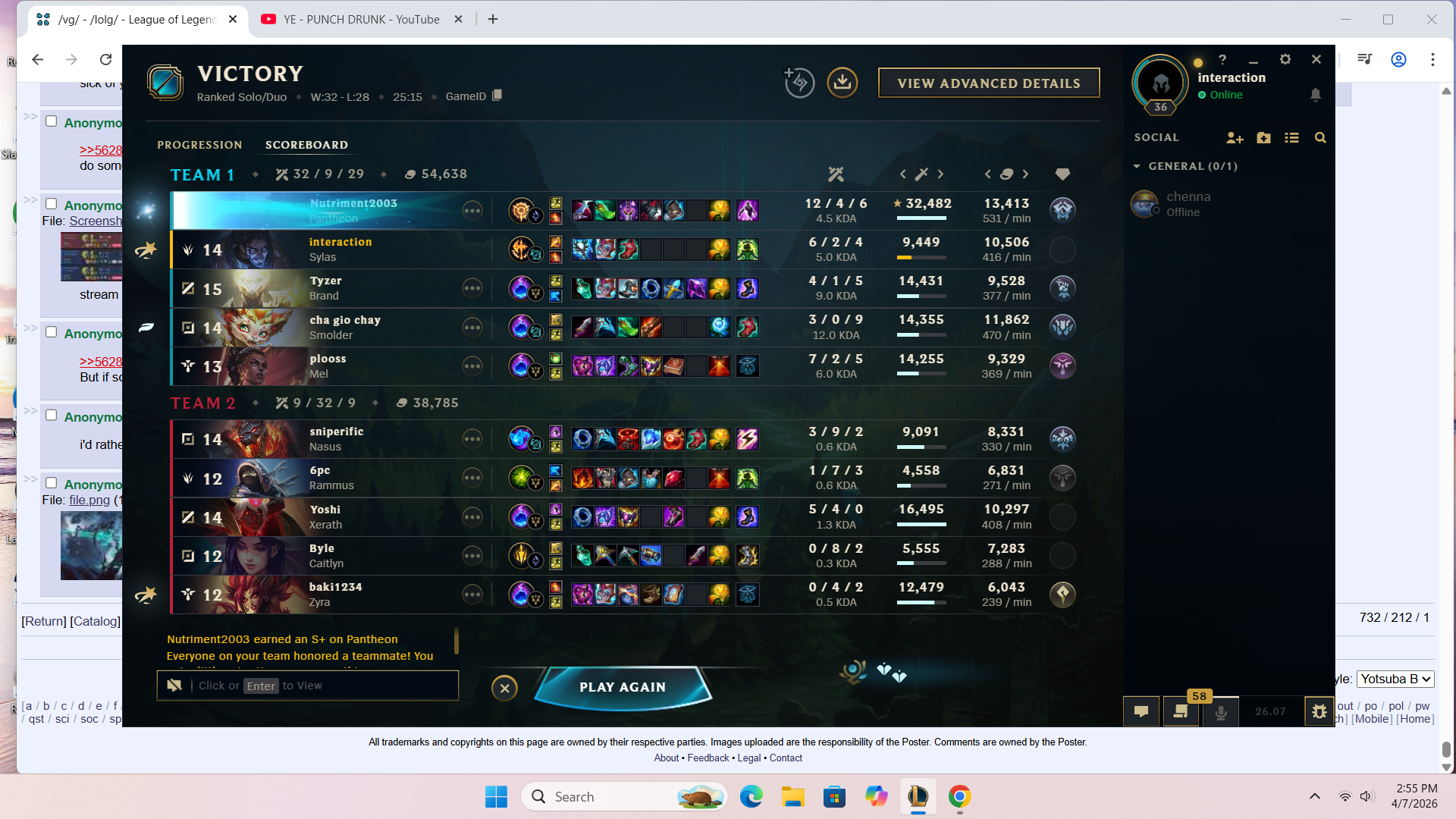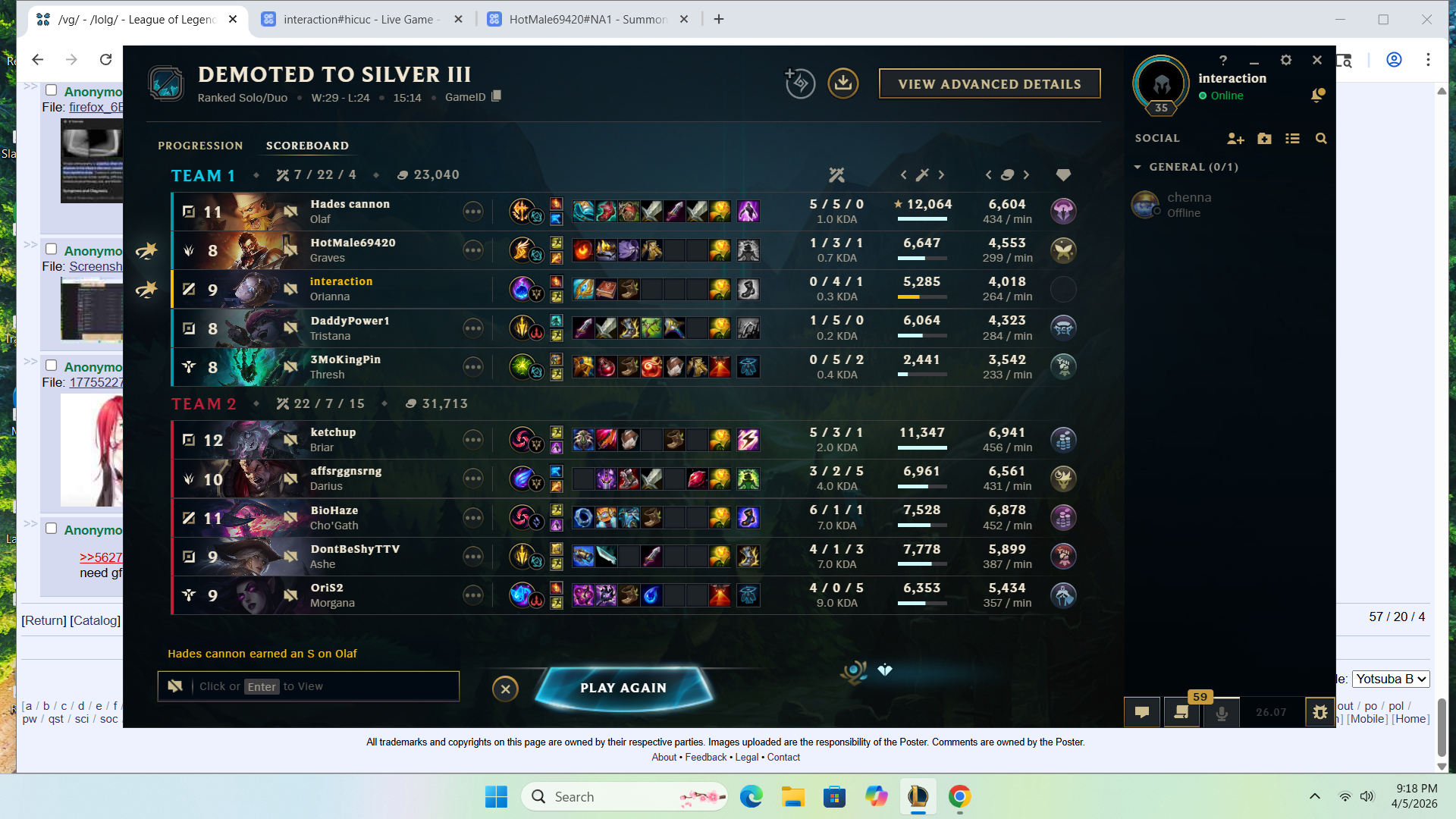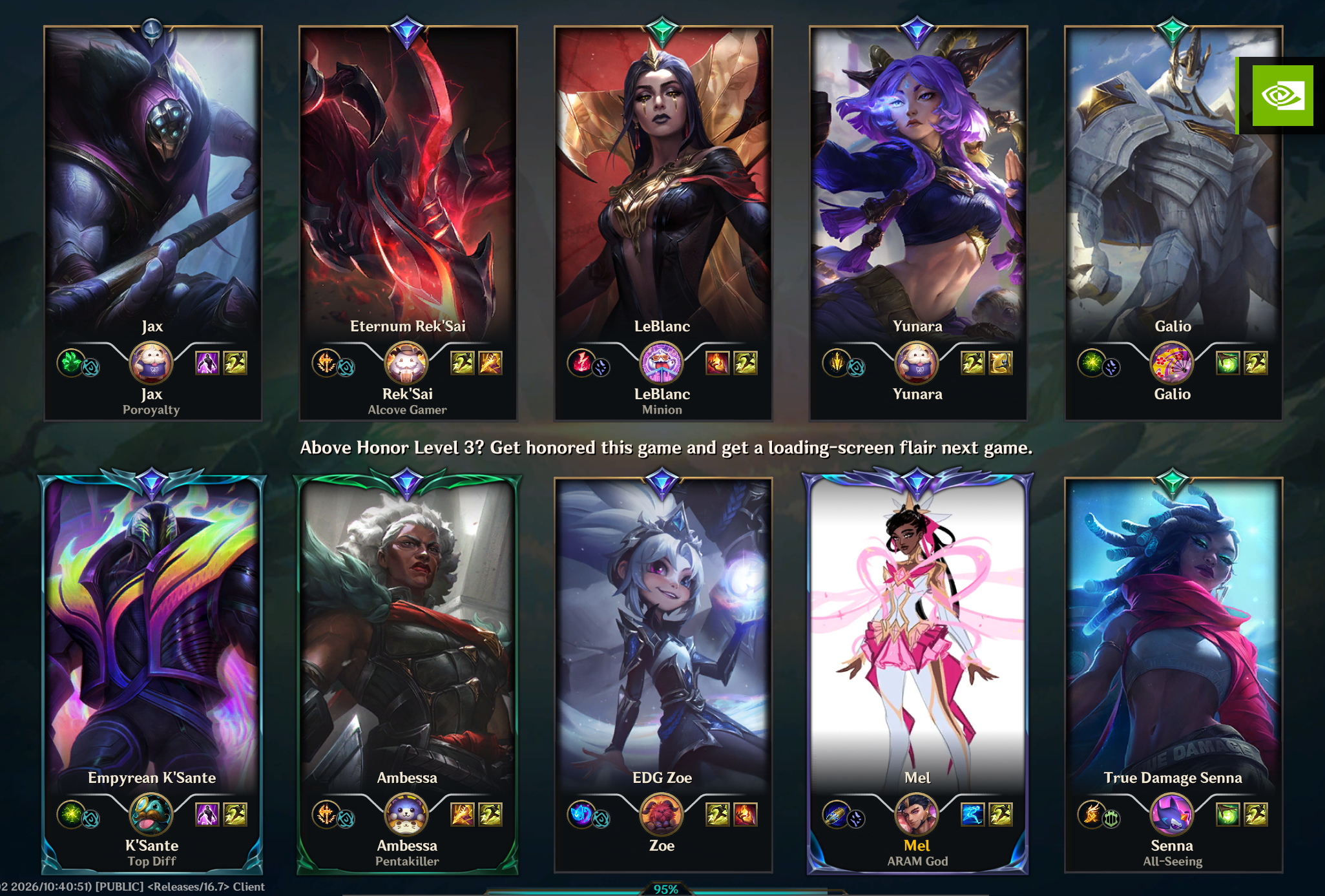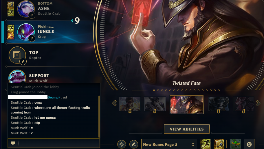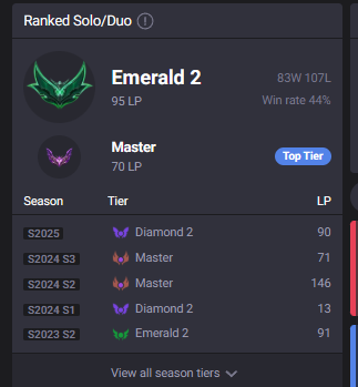 >>562780869HERES YOUR PEAK SILVER 2(BACK IN SEASON 9) JUNGLER SAY SOMETHING NICE ABOUT HIM. HES CURRENTLY BRONZE 1 AND RIOT THINKS HES DOING SO WELL (THIS ISNT A CHERRY PICKED SCREENSHOT I FUCKING SWEAR TO GOD) THAT HE SHOULD PLAY WITH THE BIG BOY GOLD PLAYERS!