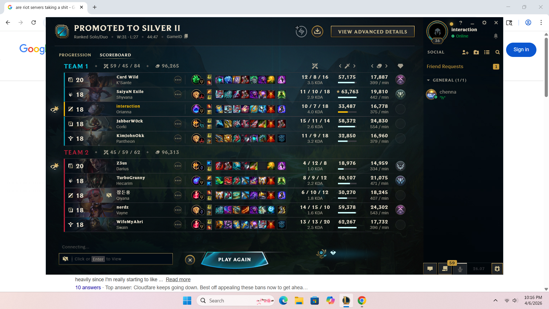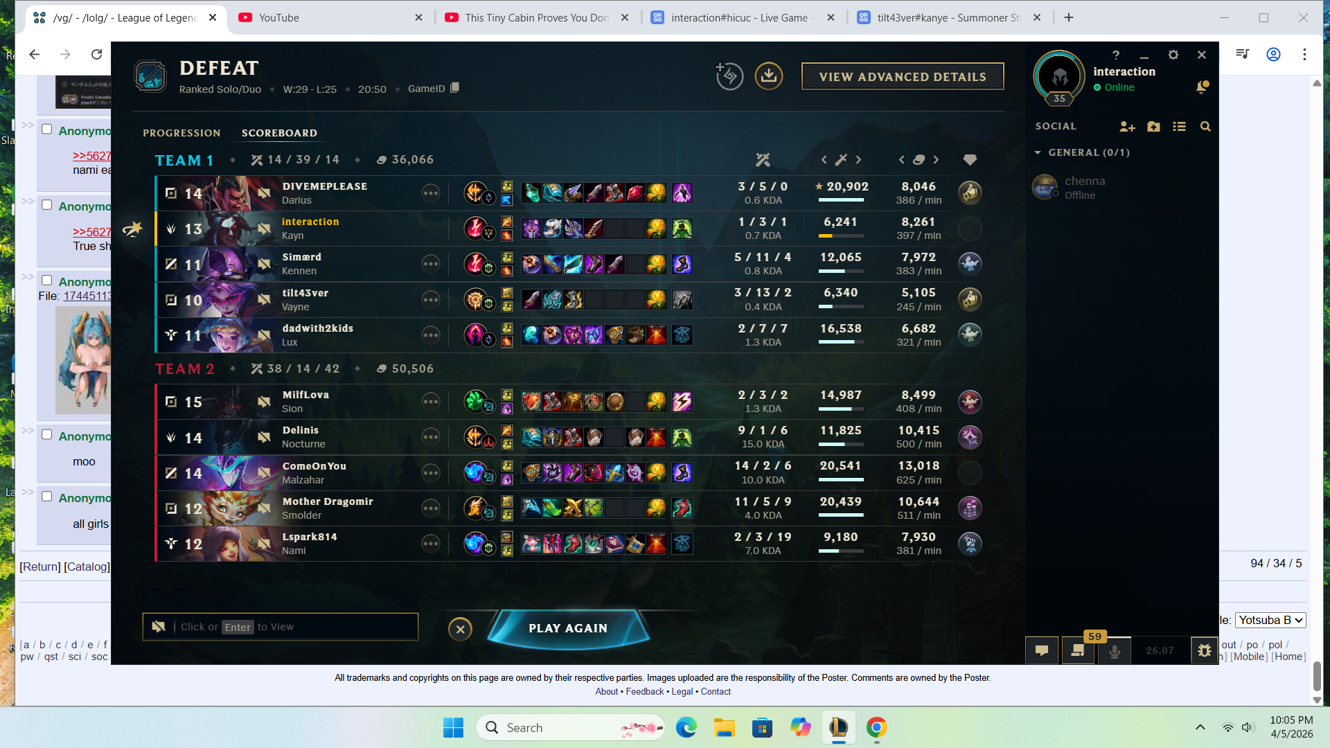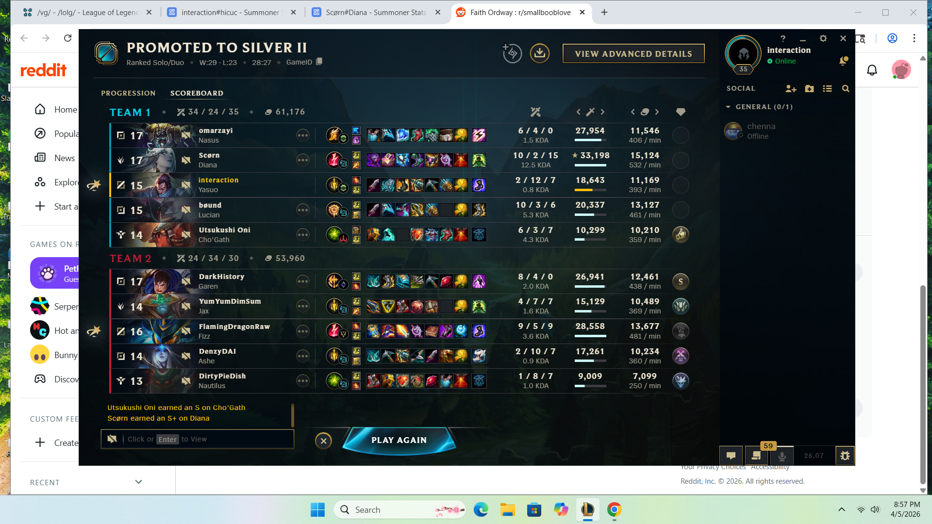 >>562780869HERES YOUR PEAK SILVER 2(BACK IN SEASON 9) JUNGLER SAY SOMETHING NICE ABOUT HIM. HES CURRENTLY BRONZE 1 AND RIOT THINKS HES DOING SO WELL (THIS ISNT A CHERRY PICKED SCREENSHOT I FUCKING SWEAR TO GOD) THAT HE SHOULD PLAY WITH THE BIG BOY GOLD PLAYERS!