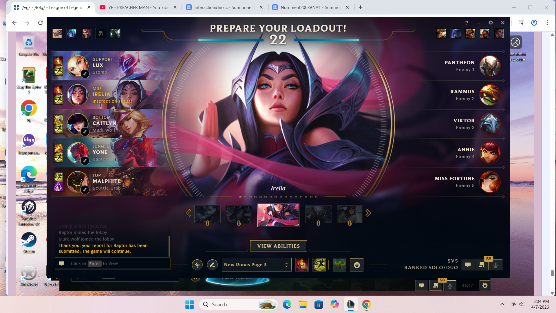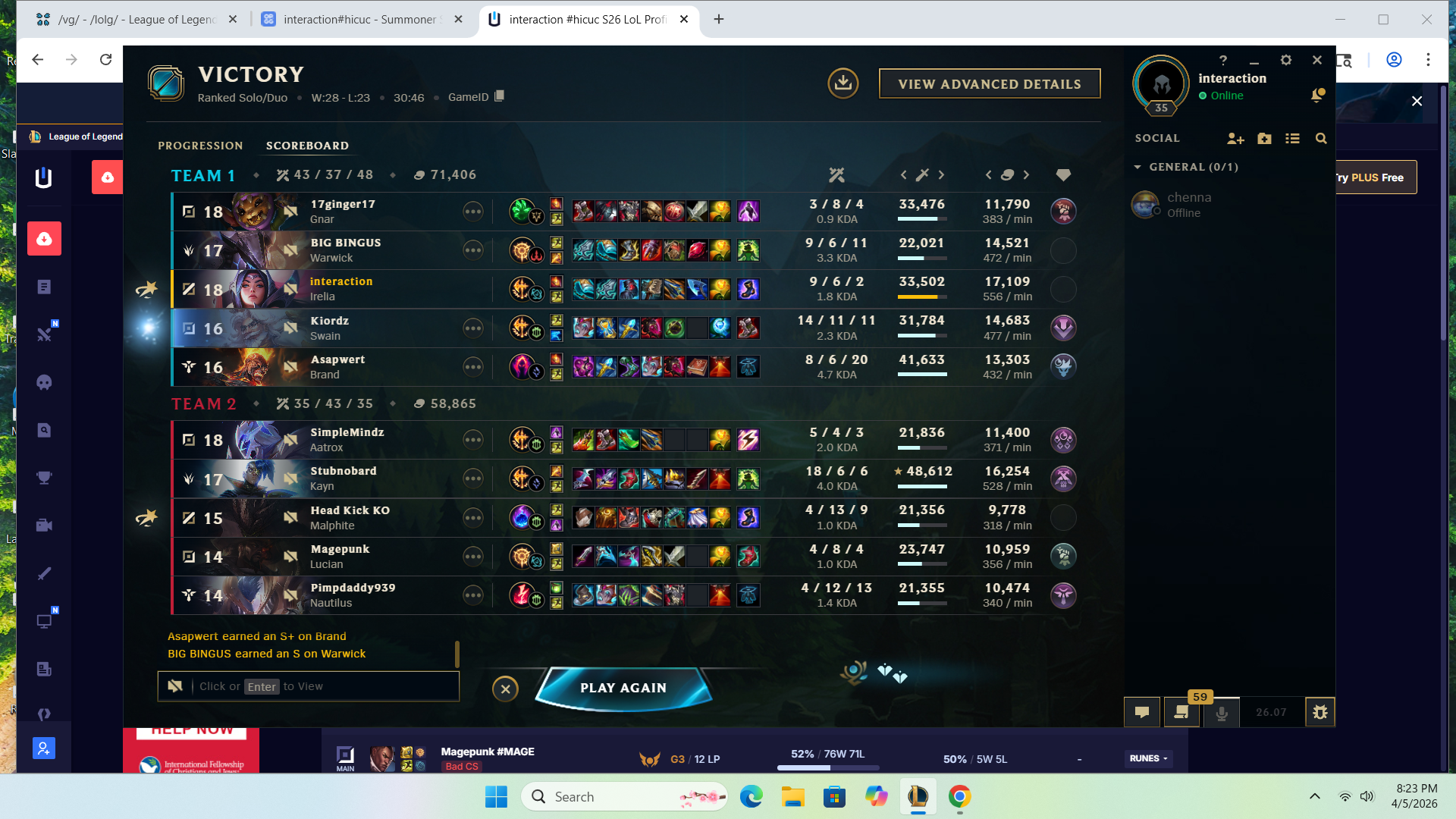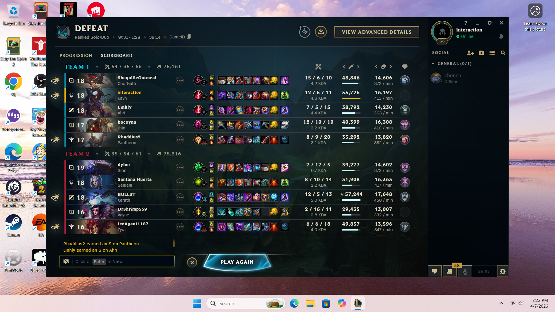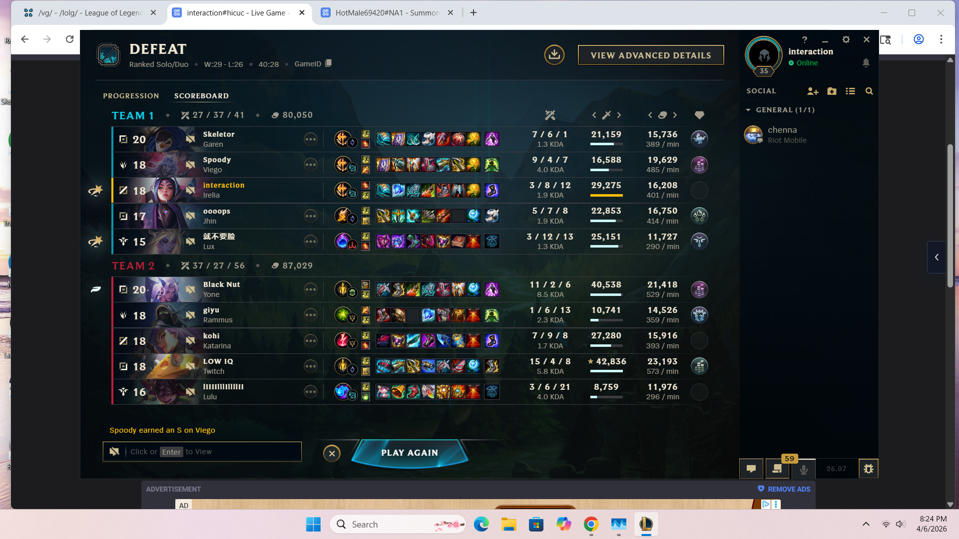 >>562780869HERES YOUR PEAK SILVER 2(BACK IN SEASON 9) JUNGLER SAY SOMETHING NICE ABOUT HIM. HES CURRENTLY BRONZE 1 AND RIOT THINKS HES DOING SO WELL (THIS ISNT A CHERRY PICKED SCREENSHOT I FUCKING SWEAR TO GOD) THAT HE SHOULD PLAY WITH THE BIG BOY GOLD PLAYERS!