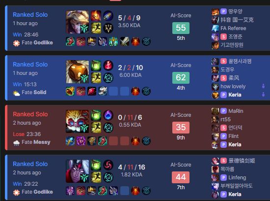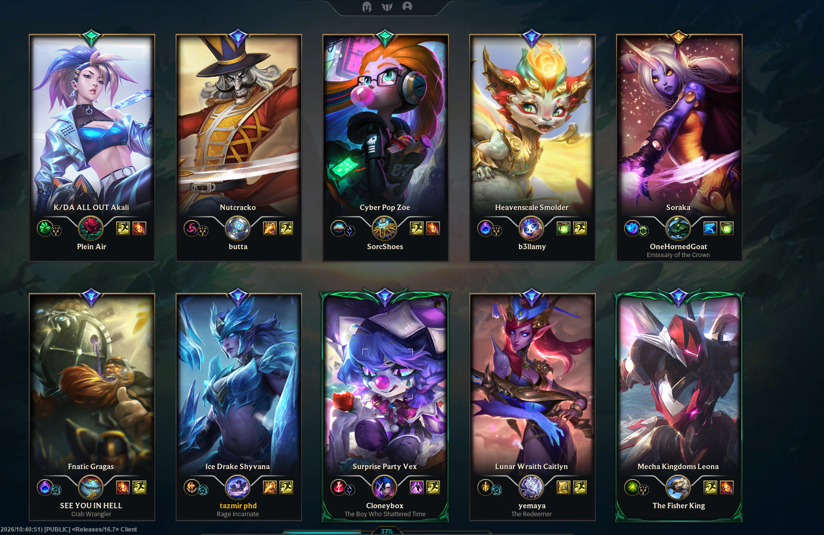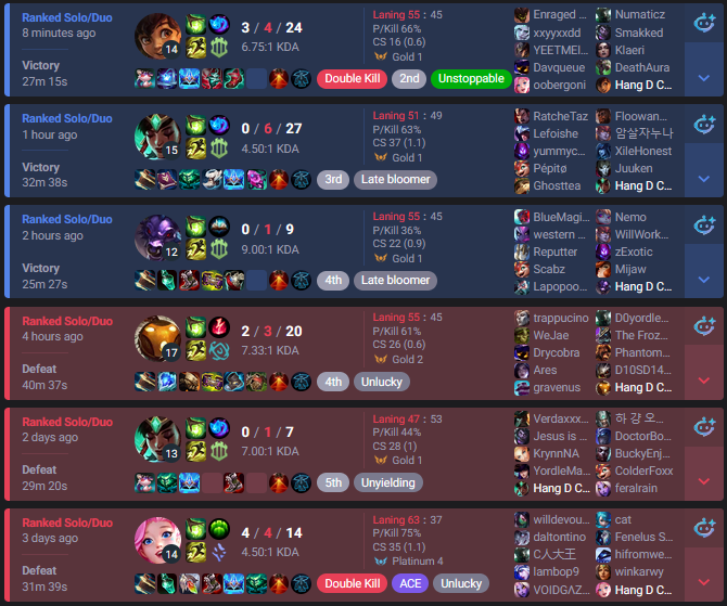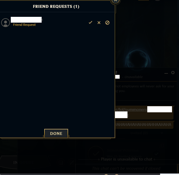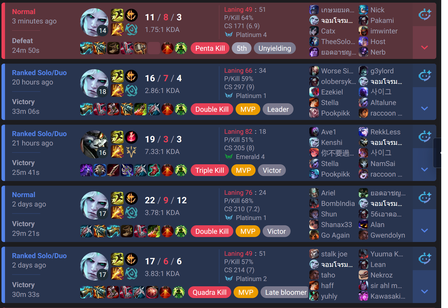 >>562775738oh yea, and of course i couldn't check their profiles, it'd just redirect to my own because they obviously didn't exist. and the games don't even show up on a site like u.gg. does riot take random names from existing players and slap them on a bot or what?